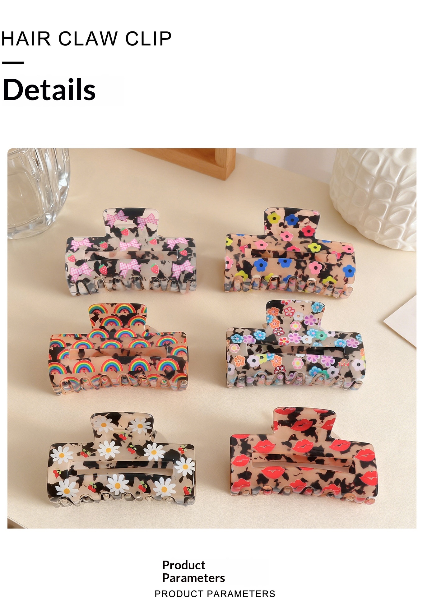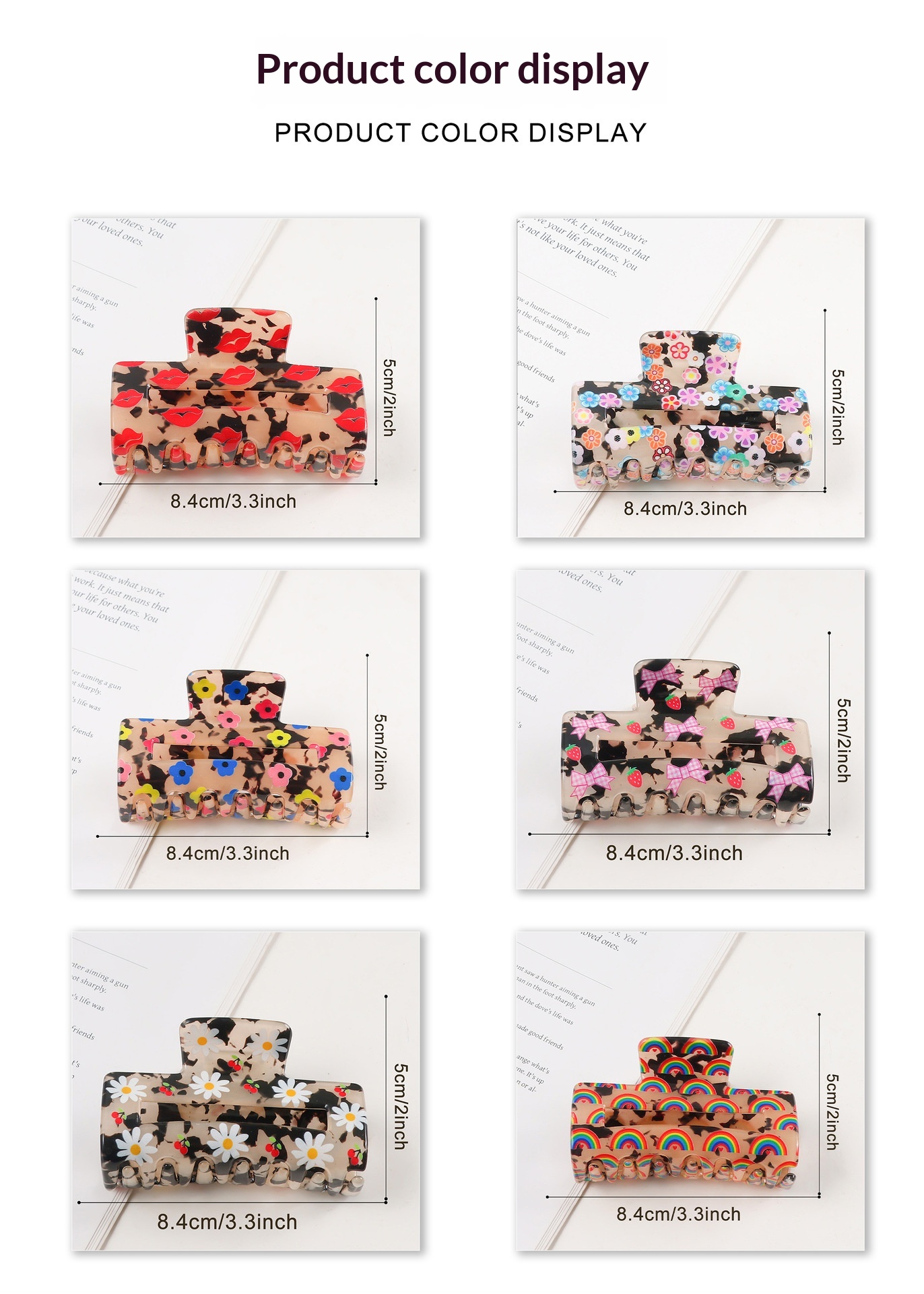 Colors: Lips, Floral Print, Small Flowers, Bow, Small Daisies, Rainbow