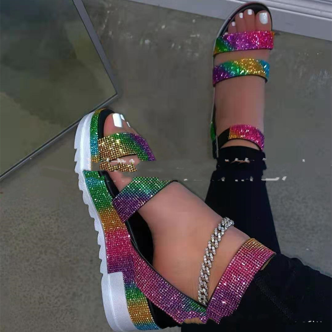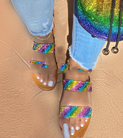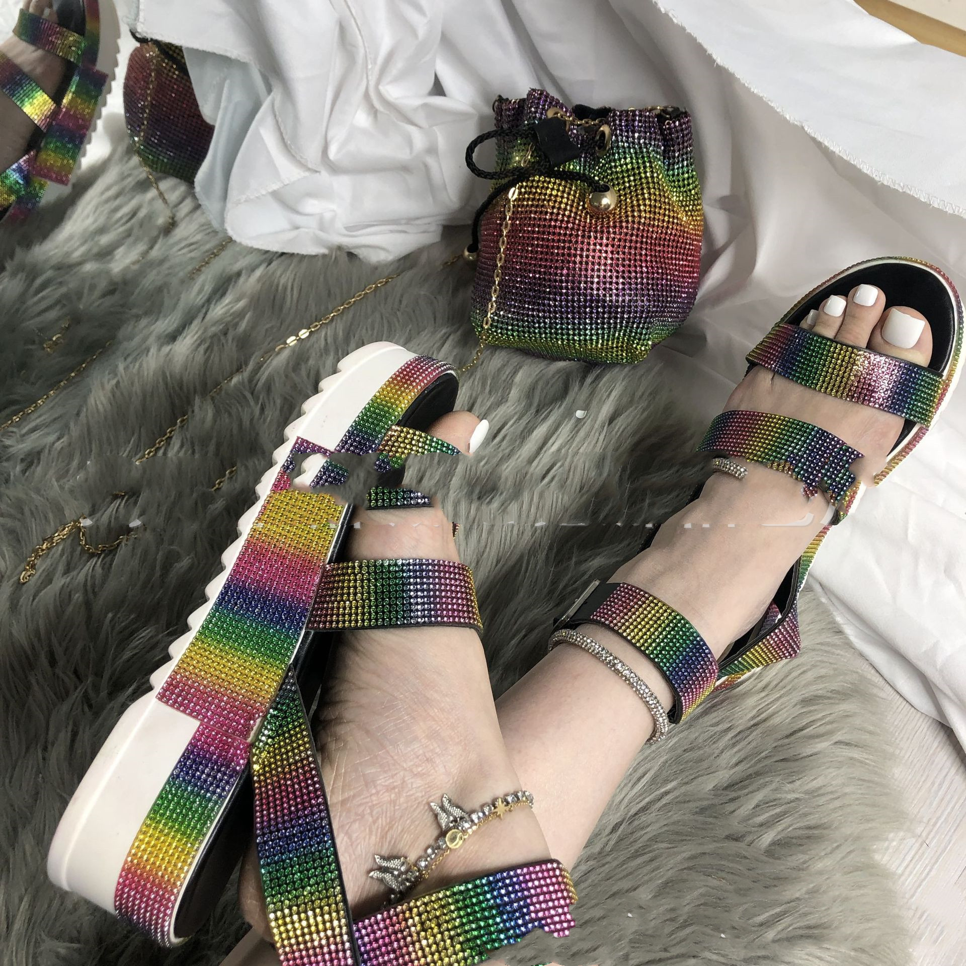 Color: Bucket bag-color, platform diamond sandals-color, two diamond slippers-color, bucket bag + sandal set, two diamond slippers + bucket bag package, flat diamond sandals-color, flat diamond sandals + bucket package