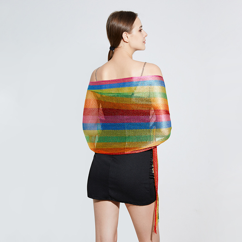 Rainbow Striped Long Beard Sunscreen Shawl Scarf