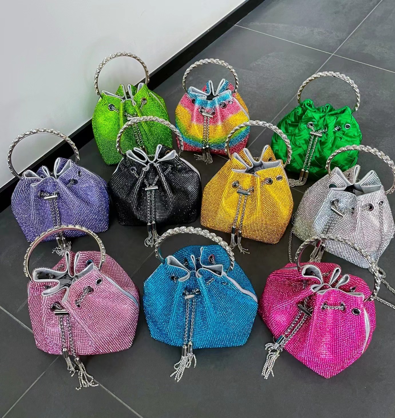 Rainbow Tassel Shiny Hand Diamond Bag