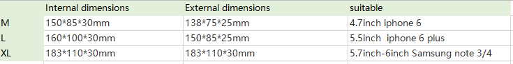 Extra large package size: 185 * 110 * 30mm (for 6-inch Samsung note 3/4 and equivalent mobile phones)