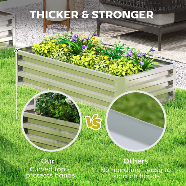 Features: - Made of galvanized steel, rust-resistant - Keeps weeds away and provides good drainage with an open bottom - Grow a wide variety of your favorite plants, vegetables, herbs, and flowers - Easy-to-assemble Specification: - Color: Silver - Material: Galvanized Steel - Overall Dimensions: 47.25" L x 23.5" W x 12" H - Side Panel Size: 21" L x 11.75" W (small), 44.5" L x 11.75" W (big) - Each Connecting Piece Size: 12" L x 3.5" W