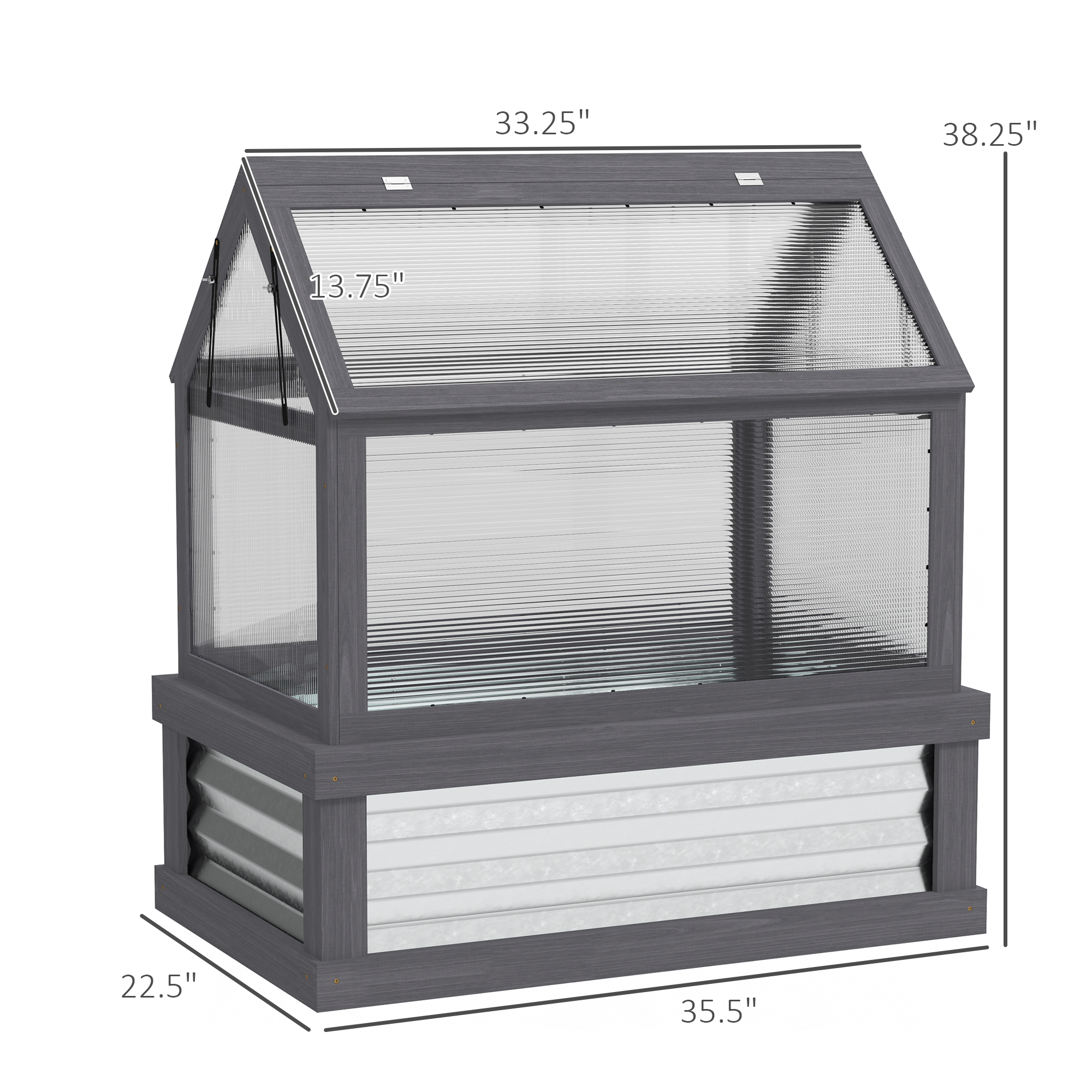 Raised Garden Flower Bed Kit With Greenhouse, Wooden Cold Frame Planter, 35.5" X 22.5" X 38.25", Gray