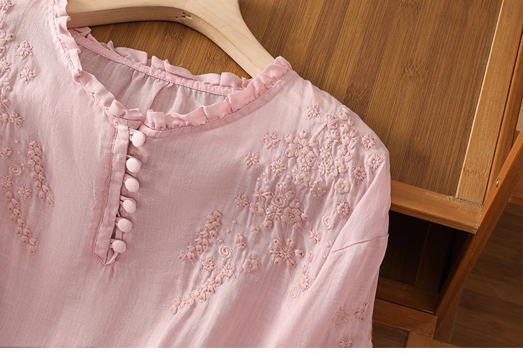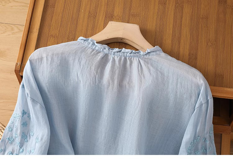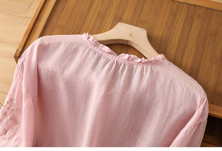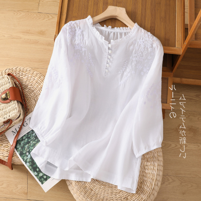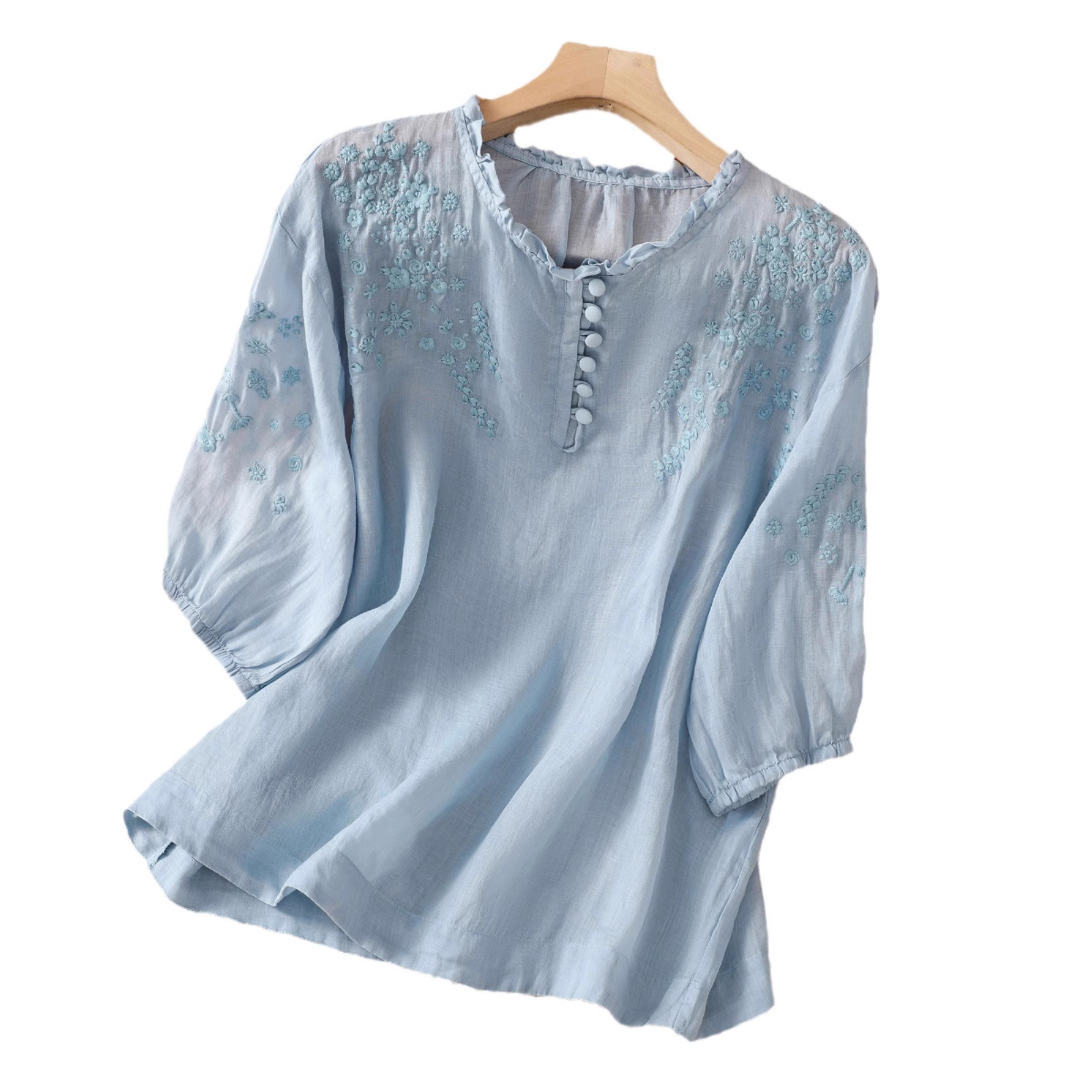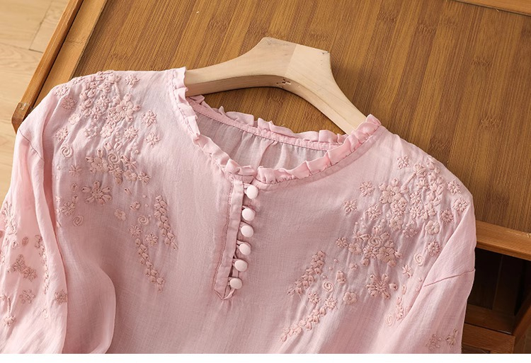 Ramie Women's Embroidered Lace Thin Cotton Linen Shirt