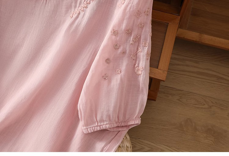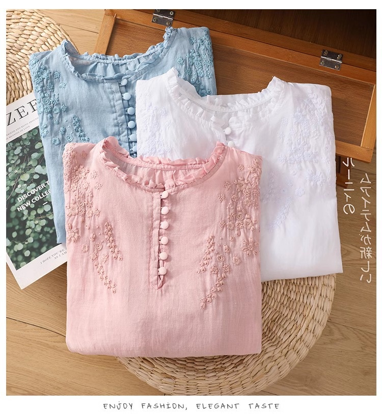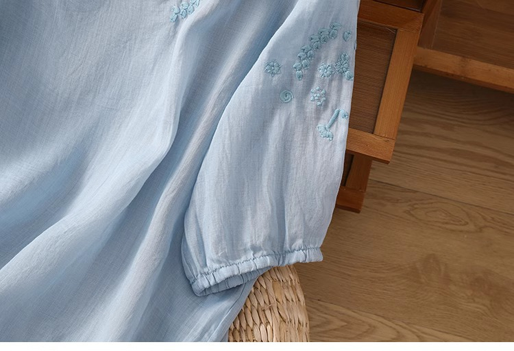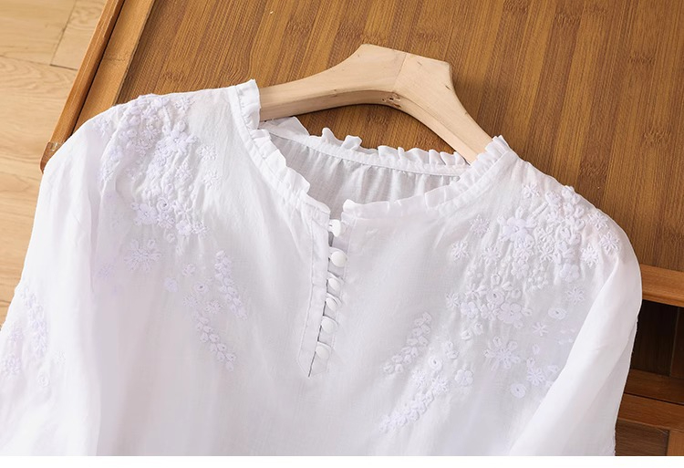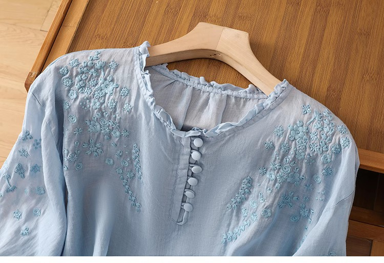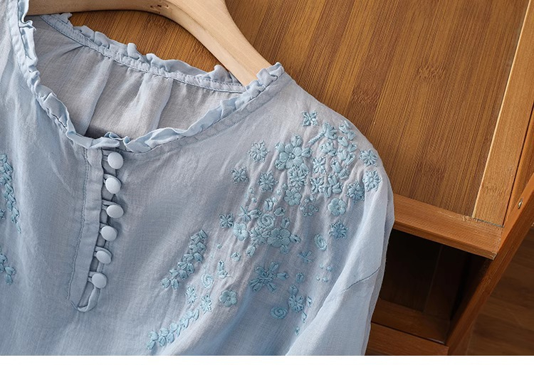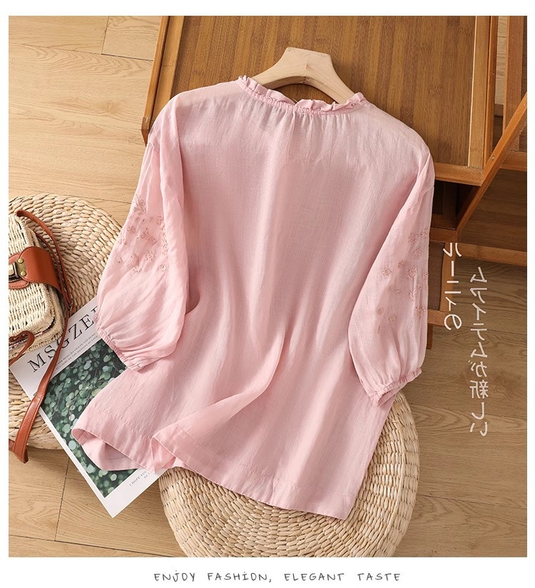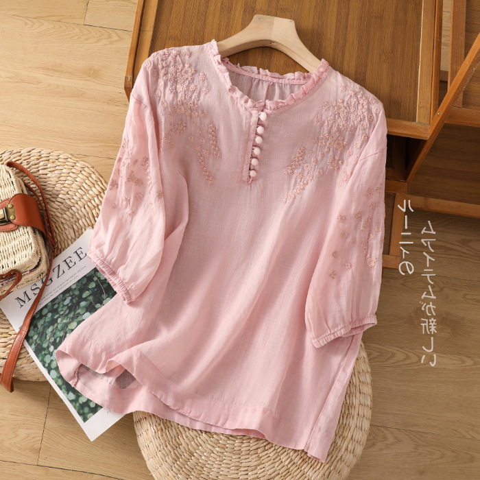 Ramie Women's Embroidered Lace Thin Cotton Linen Shirt