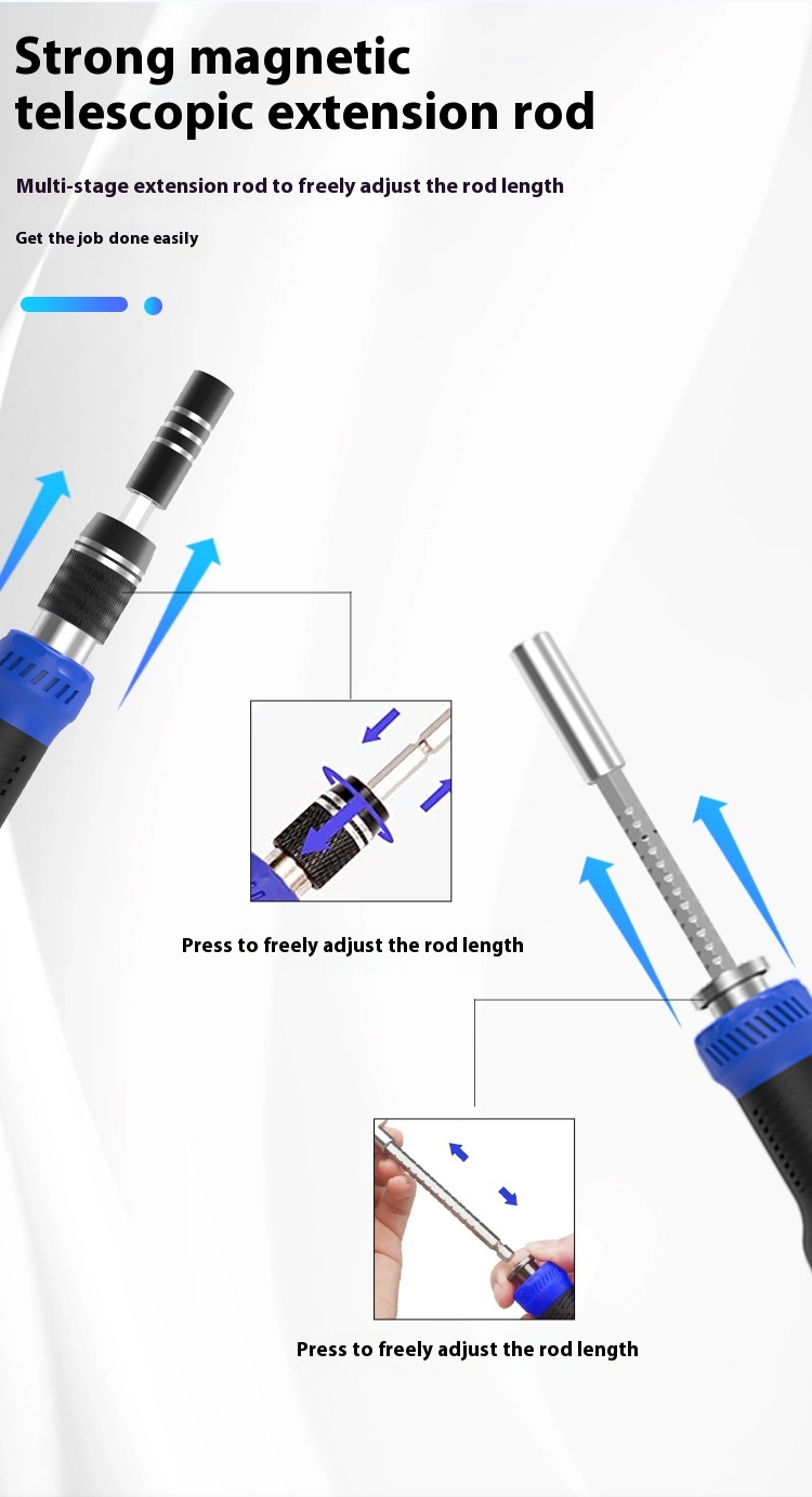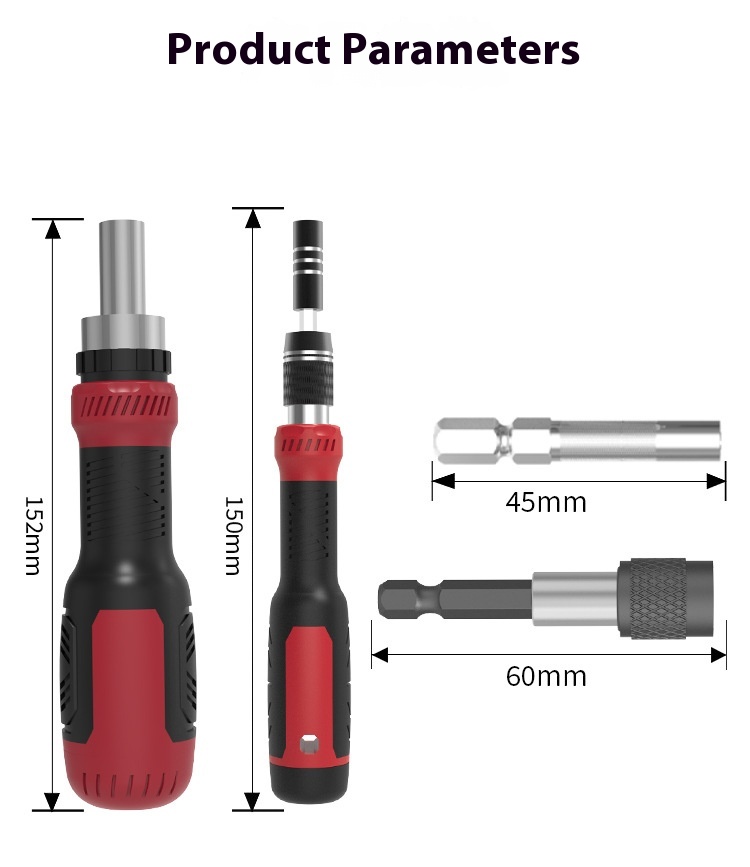 Telescopic screwdriver * 1, manual screwdriver * 1, extension rod * 1, bit converter * 1, lengthened head * 1, bit * 72/Telescopic screwdriver * 1