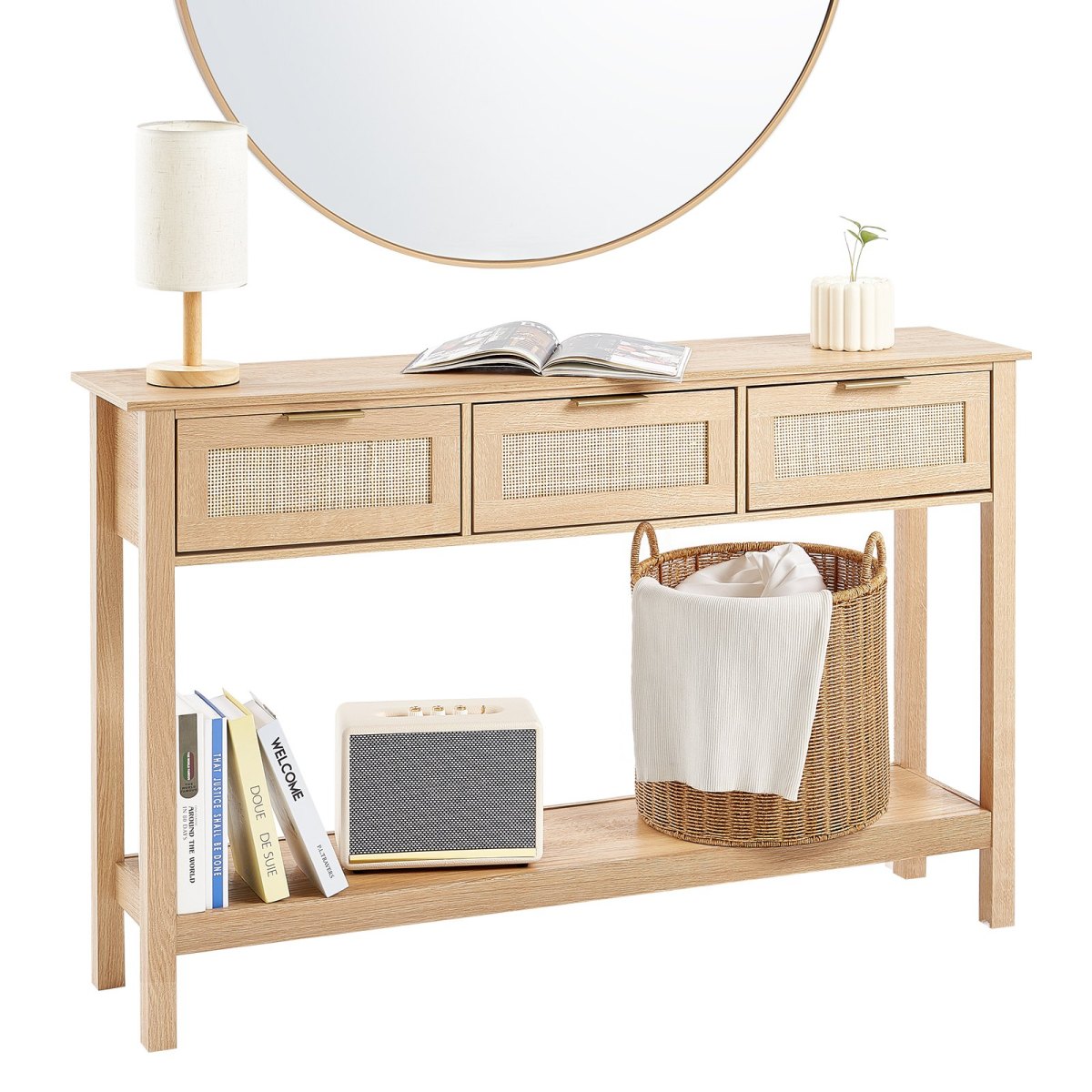Multifunctional Design: This rattan entryway table features a multifunctional design, serving as an entryway table, display table, storage table, or reading table. Suitable for entryways, living rooms, bedrooms, and other spaces, it meets different usage needs and maximizes every inch of space.