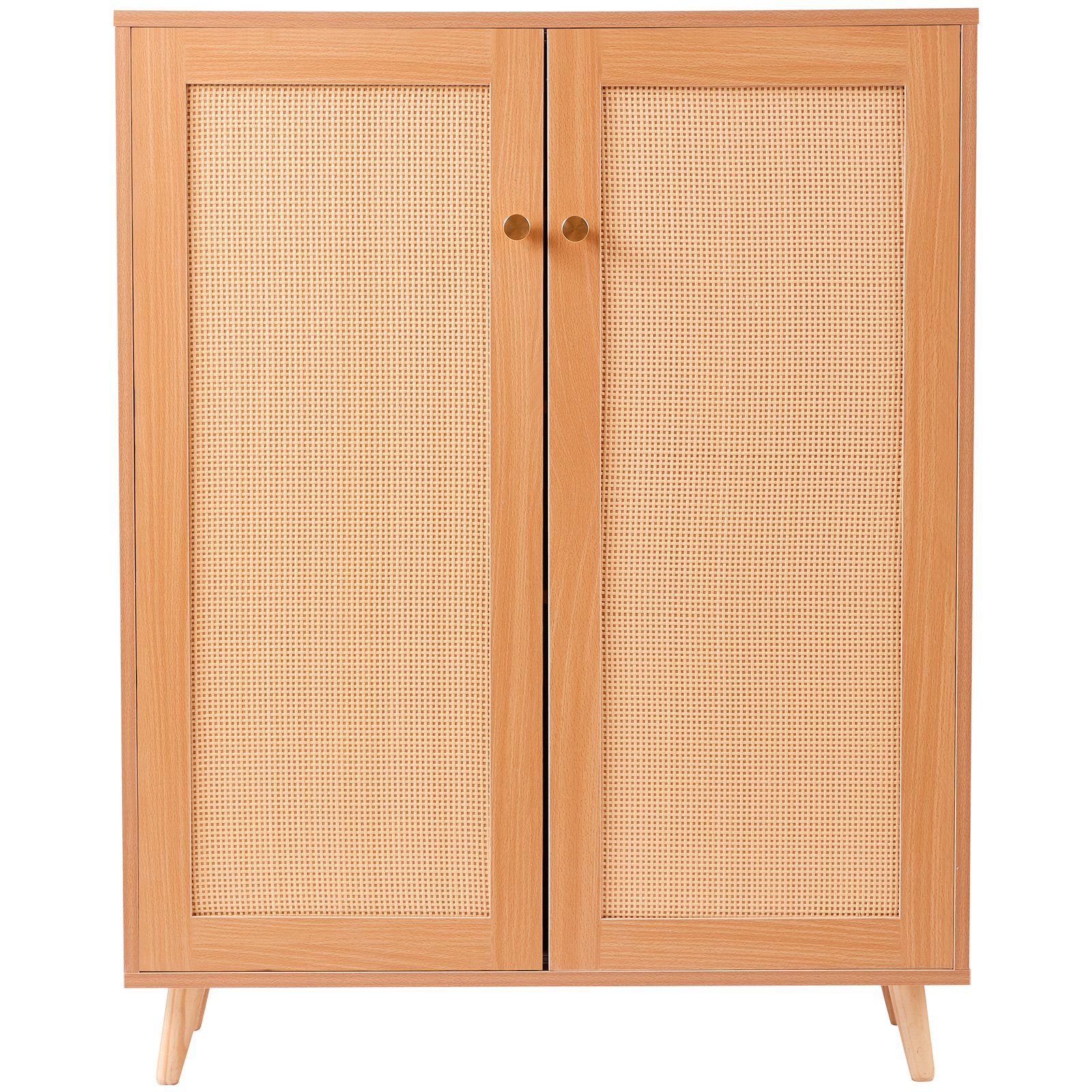 Features & Details Exquisite Space Storage: The top platform can hold decorative photo frames and keys, while the removable middle shelf is adjustable in height. This design allows you to maximize every inch of the rattan shoe cabinet, making it easy to access your favorite shoes and keep your entryway tidy. Minimalist Versatile Design: Featuring a classic rattan finish combined with solid wood legs and aluminum alloy handles, this rattan shoe storage cabinet is both simple and stylish. It perfectly integrates with various home decor styles, achieving a harmonious and aesthetic overall look. High Quality and Durability: Made from premium materials, the side panels and tabletop thickness have been strengthened to 15mm, greatly enhancing the stability and durability of this rattan shoe rack, enabling it to easily support the weight of multiple pairs of shoes. Easy Assembly: The shoe cabinet design is straightforward, accompanied by detailed graphic instructions for effortless assembly. The anti-tip device ensures a more stable and secure use of this shoe storage entryway cabinet, providing you with a reliable storage solution. Multi-Scene Adaptability: This shoe cabinet perfectly combines classic rectangular rattan doors. Whether placed in the hallway as a cabinet shoe storage, transformed into a practical coffee table in the dining area, serving as an elegant bookshelf in the study, or acting as a convenient storage rack in the living room, it seamlessly integrates into every corner, keeping everything organized.