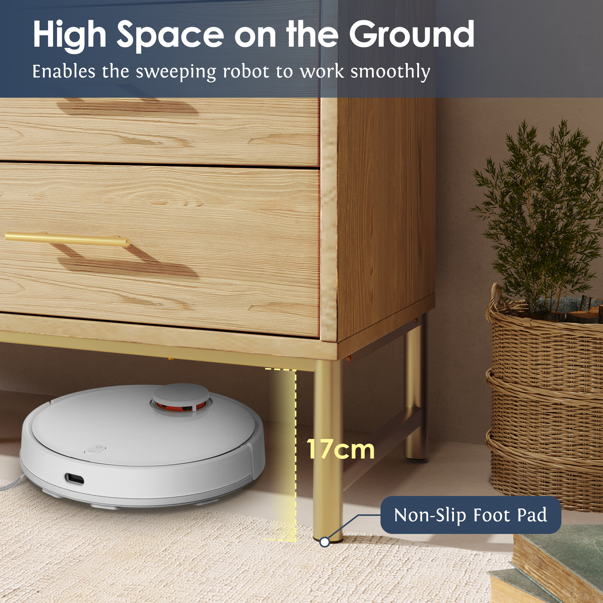 • **Ideal 17 cm floor clearance and height-adjustable metal support feet** The chest of drawers has a floor clearance of 17 cm, which makes daily cleaning easier. The centre support leg is height-adjustable and equipped with a pad that protects the floor and at the same time ensures the stability of the chest of drawers. This allows it to adapt to different floor conditions.