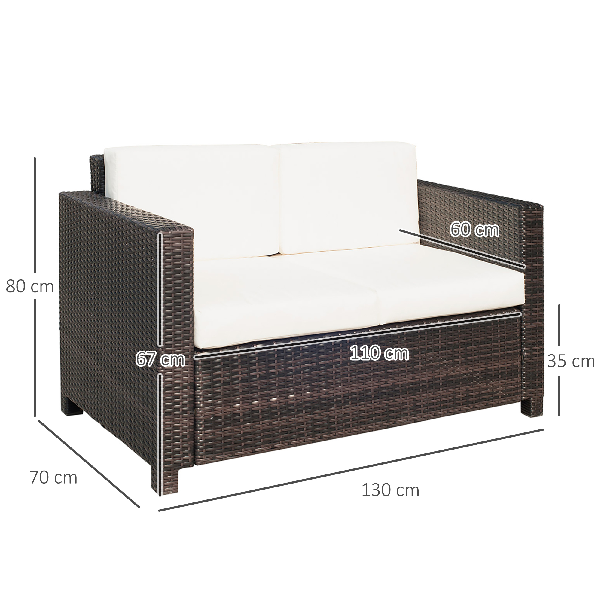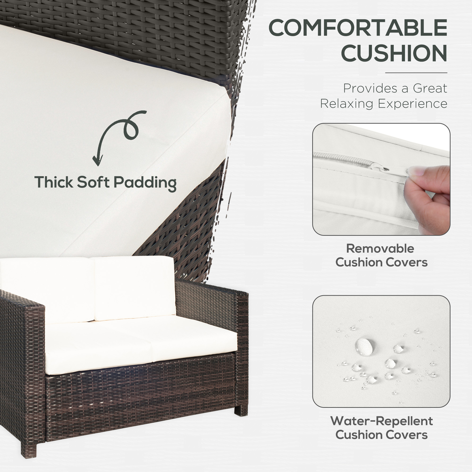 Brighten your garden with the rattan loveseat. Made of steel frame to prevent rust and damage outdoors, wrapped in rattan for easy cleaning and is a mainstay in your garden furniture. Come with thick padded and plush cushions, as well as being water-resistant and having washable covers, with a high back and armrests for plenty of support, this outdoor couch is a great way for two persons to sit back and relax in the sun.