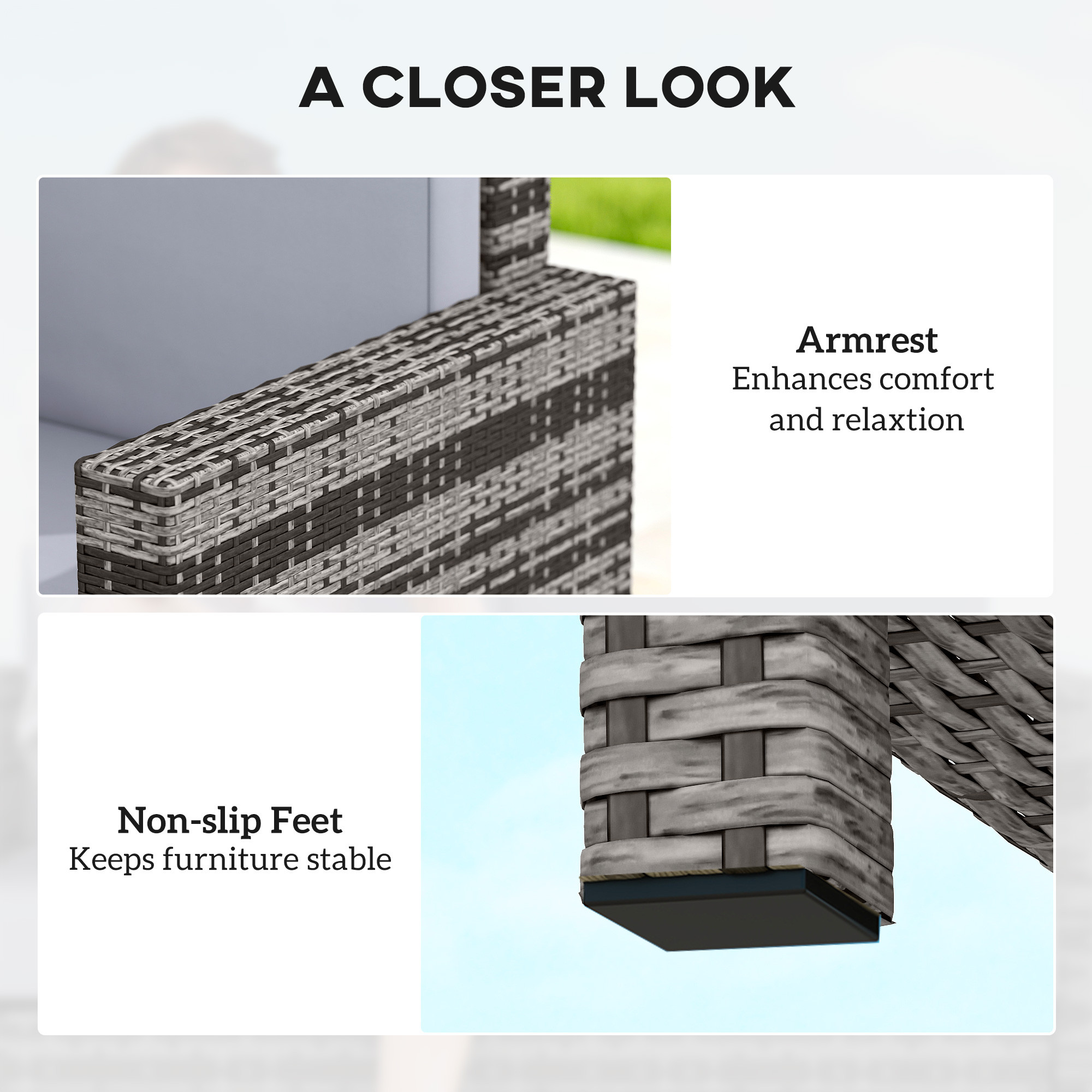 Brighten your garden with the rattan loveseat. Made of steel frame to prevent rust and damage outdoors, wrapped in rattan for easy cleaning and is a mainstay in your garden furniture. Come with thick padded and plush cushions, as well as being water-resistant and having washable covers, with a high back and armrests for plenty of support, this outdoor couch is a great way for two persons to sit back and relax in the sun.