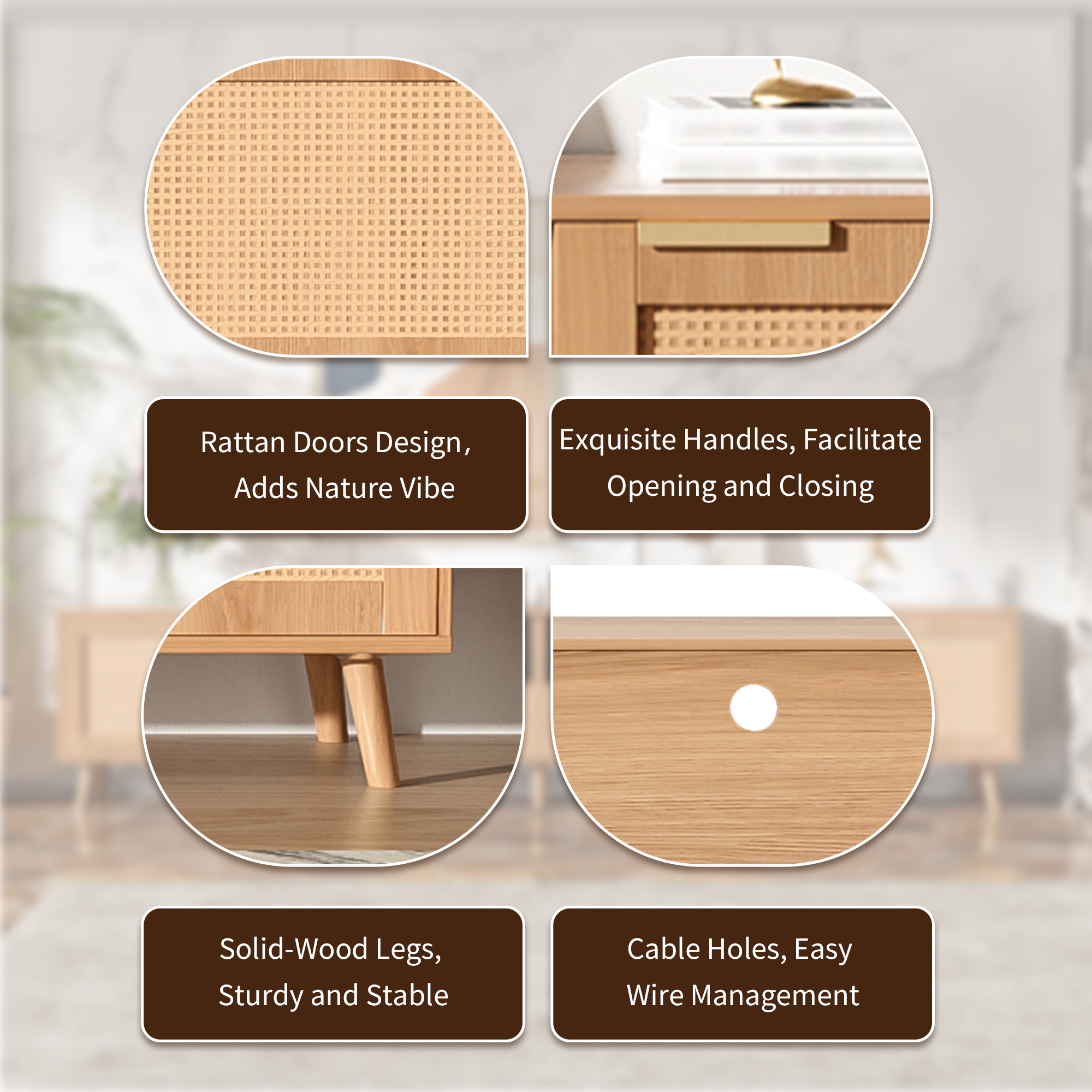 Product Name:Rattan TV Stand for TVs up to 90'', Modern Farmhouse Media Console, Entertainment Center with Solid Wood Legs, TV Cabinet for Living Room, Bedroom