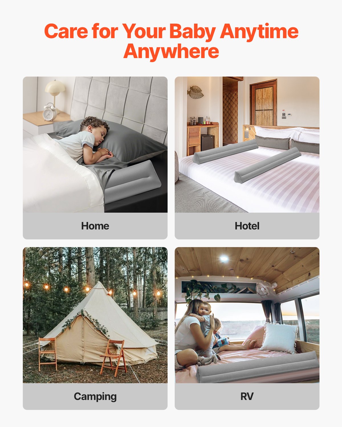 VEVOR Rausfallschutz Bett 1205x160x180mm, aufblasbares Bettschutzgitter mit Handpumpe, rutschfeste, Bettgitter für Kleinkinder, für Einzel-, Voll-, Queen- & Kingsize-Betten, leicht & tragbar (2er-Set)
