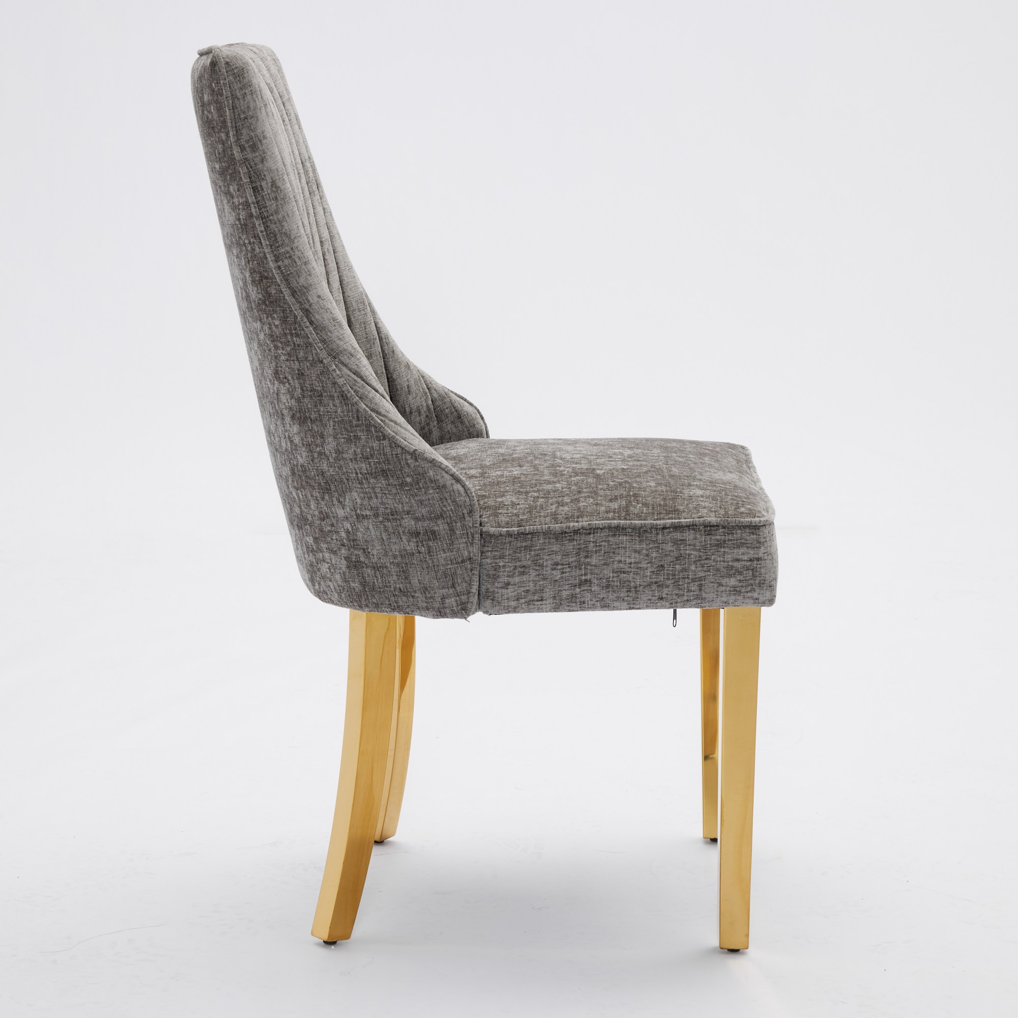 Rayon Cloth Flocking Chenille Dining Chairs Channel Kitchen Dinner Chair Comfy Fabric Upholstered Accent Chair For Dining Room With Golden Stainless Steel Plating Legs,Set Of 2 Gray, SW1647GY
