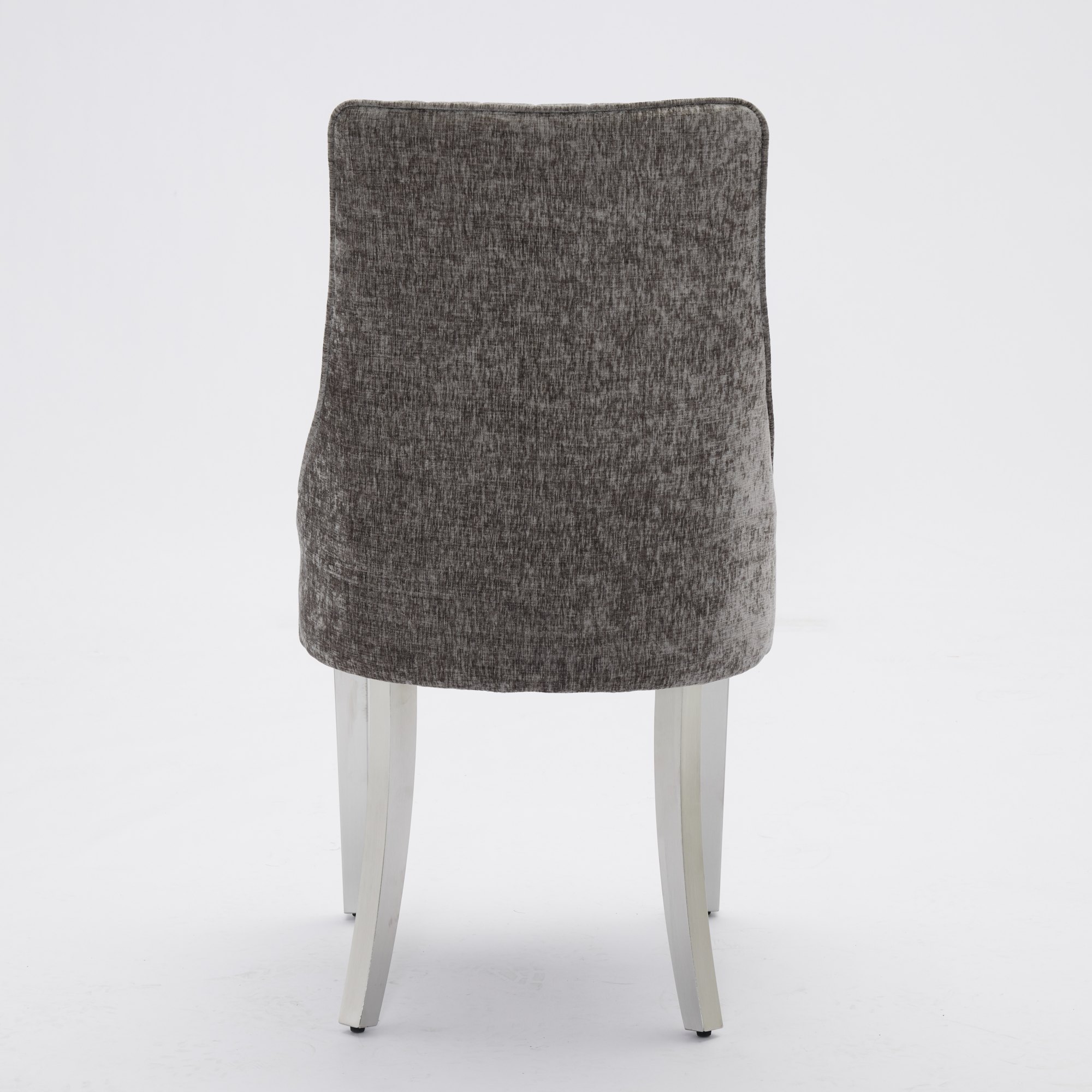 Product Name:Rayon Cloth Flocking Chenille Dining Chairs Channel Kitchen Dinner Chair Comfy Fabric Upholstered Accent Chair for Dining Room with Silver Brushed Stainless Steel Legs,Set of 2 (Gray), SW1747GY