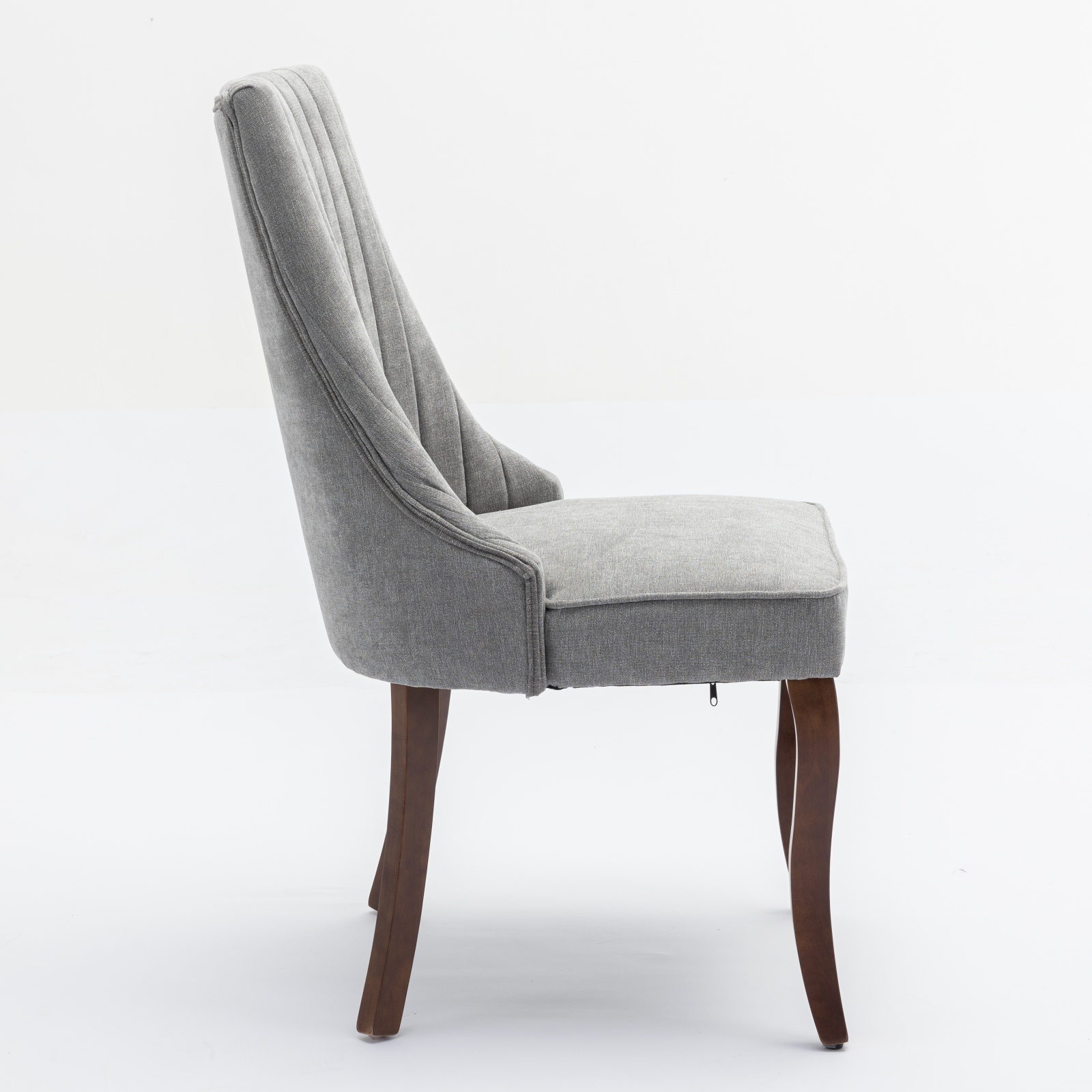 Rayon Cloth Flocking Linen Dining Chairs Channel Kitchen Dinner Chair Comfy Fabric Upholstered Accent Chair For Dining Room With Curved Solid Wood Legs,Set Of 2 Gray, SW1847GY