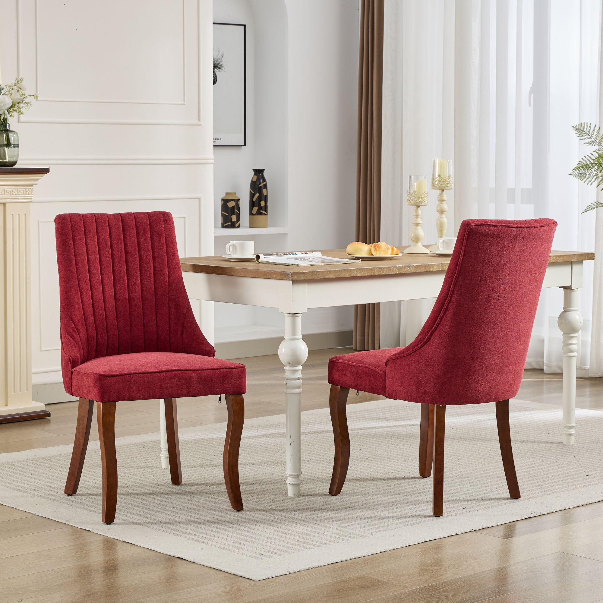 Product Name:Rayon Cloth Flocking Linen Dining Chairs Channel Kitchen Dinner Chair Comfy Fabric Upholstered Accent Chair for Dining Room with Curved Solid Wood Legs,Set of 2 (Wine Red), SW1847WR