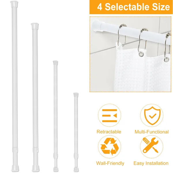 *Wide Application Range*:Our tension rod can be used in bathroom,wardrobe,kitchen,balcony,etc. to hang window curtain,shower curtain and towels,hold kitchenware and organize clothes,ties,jewelry and so on.
