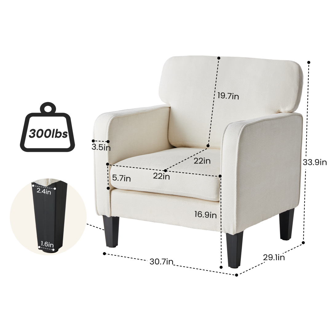 【High-quality Materials】Living room chairs provide a stable base, the seat cushion and backrest of this comfy chair are filled with high-resilience foam, giving you the ultimate user experience. The breathable fabric allows you to use it in any season.