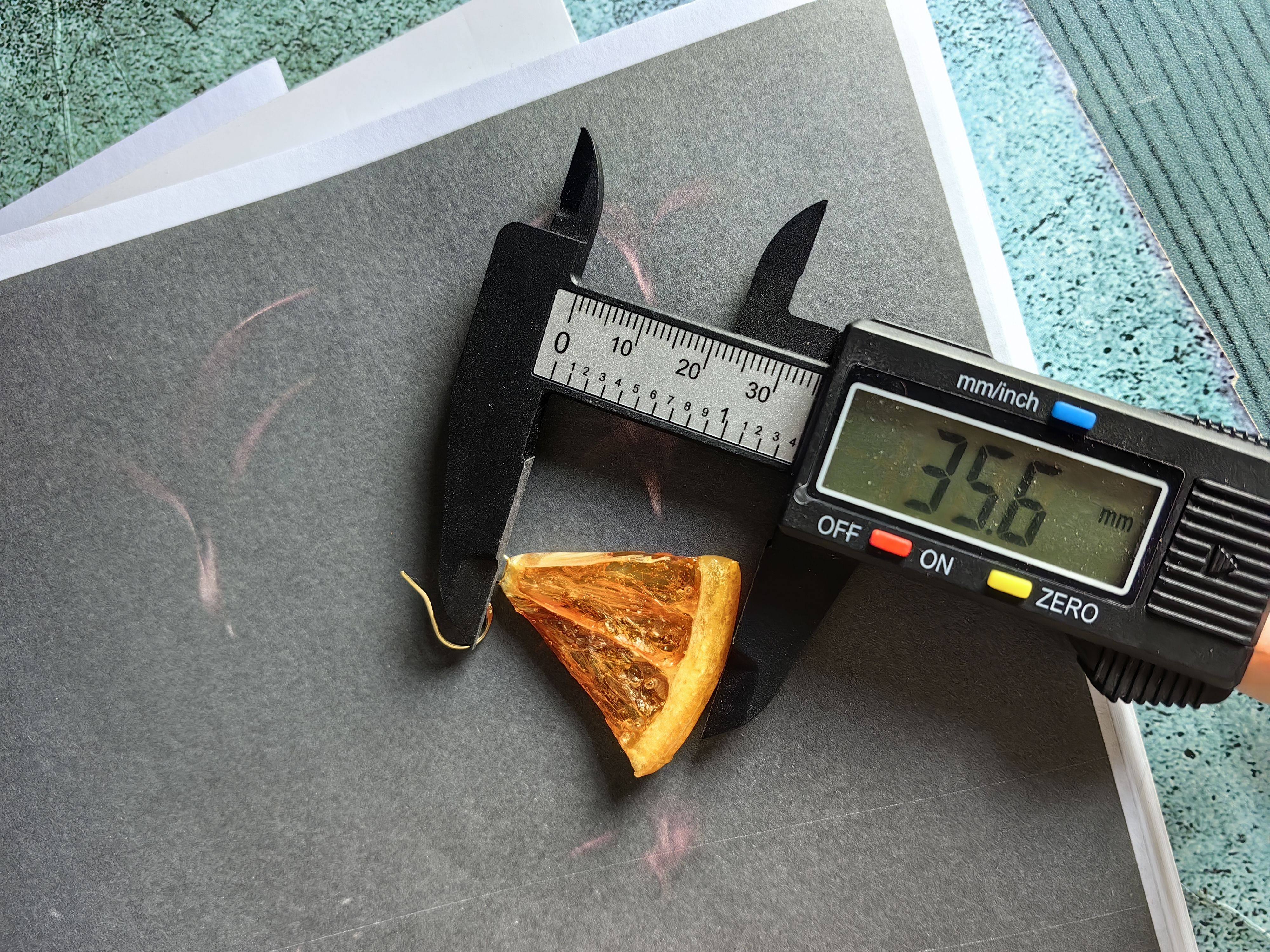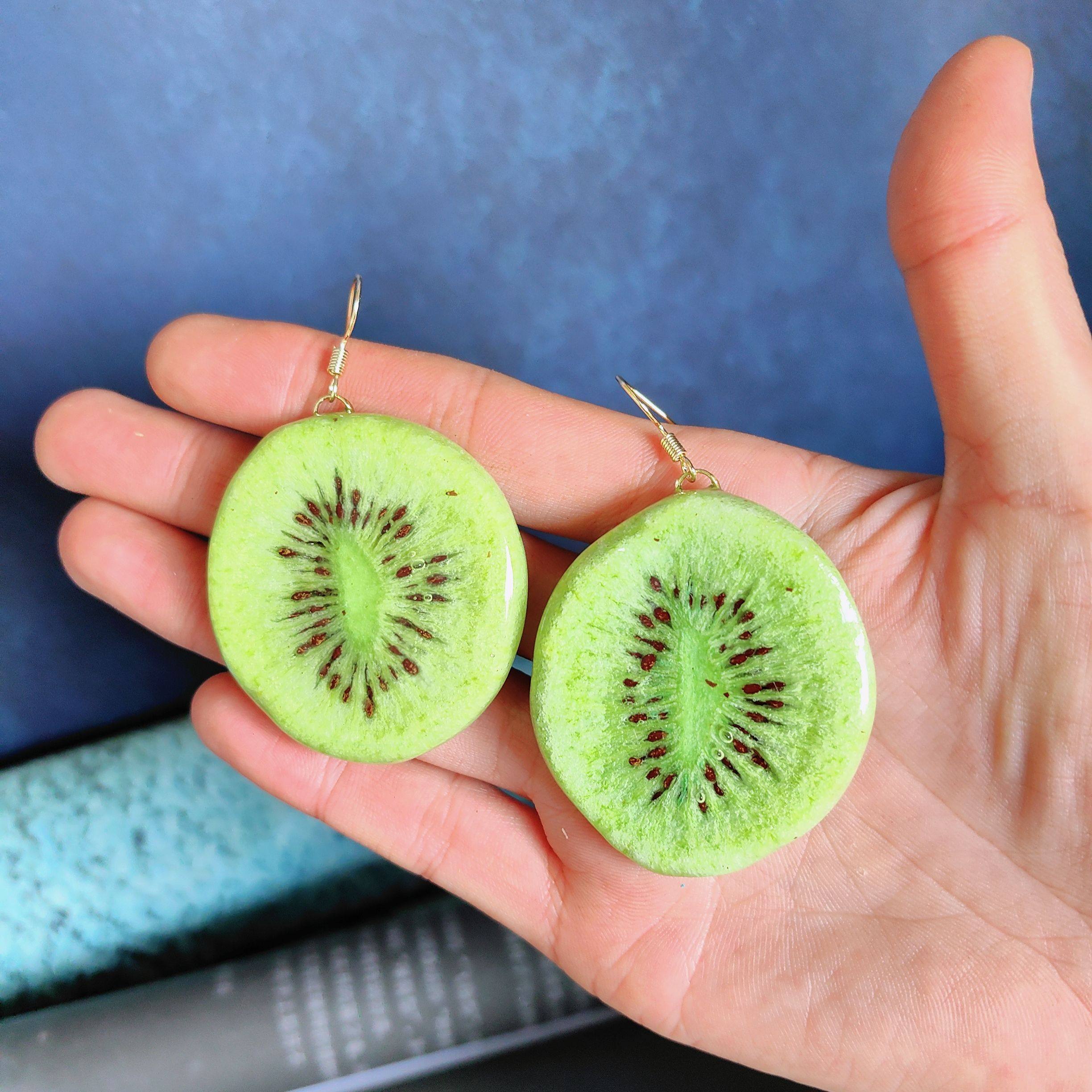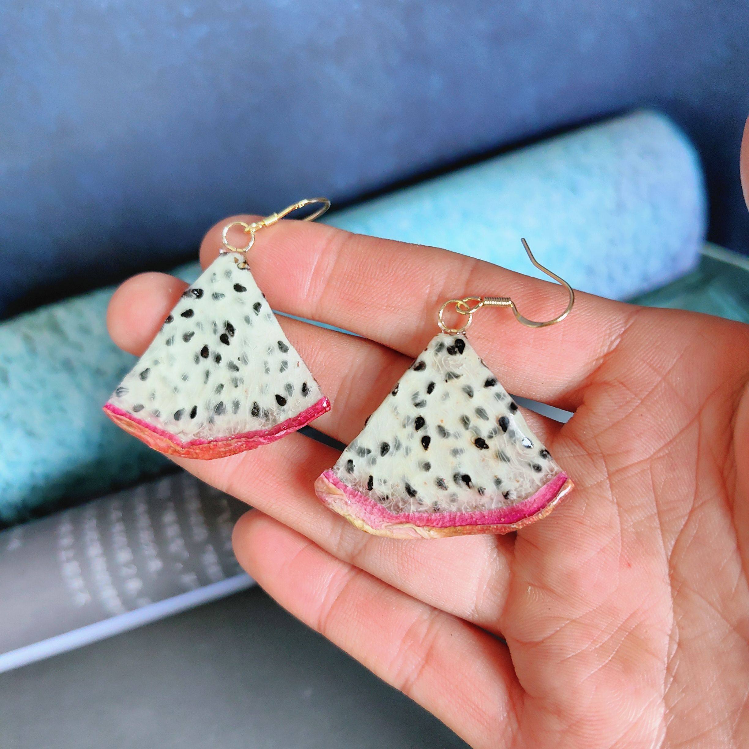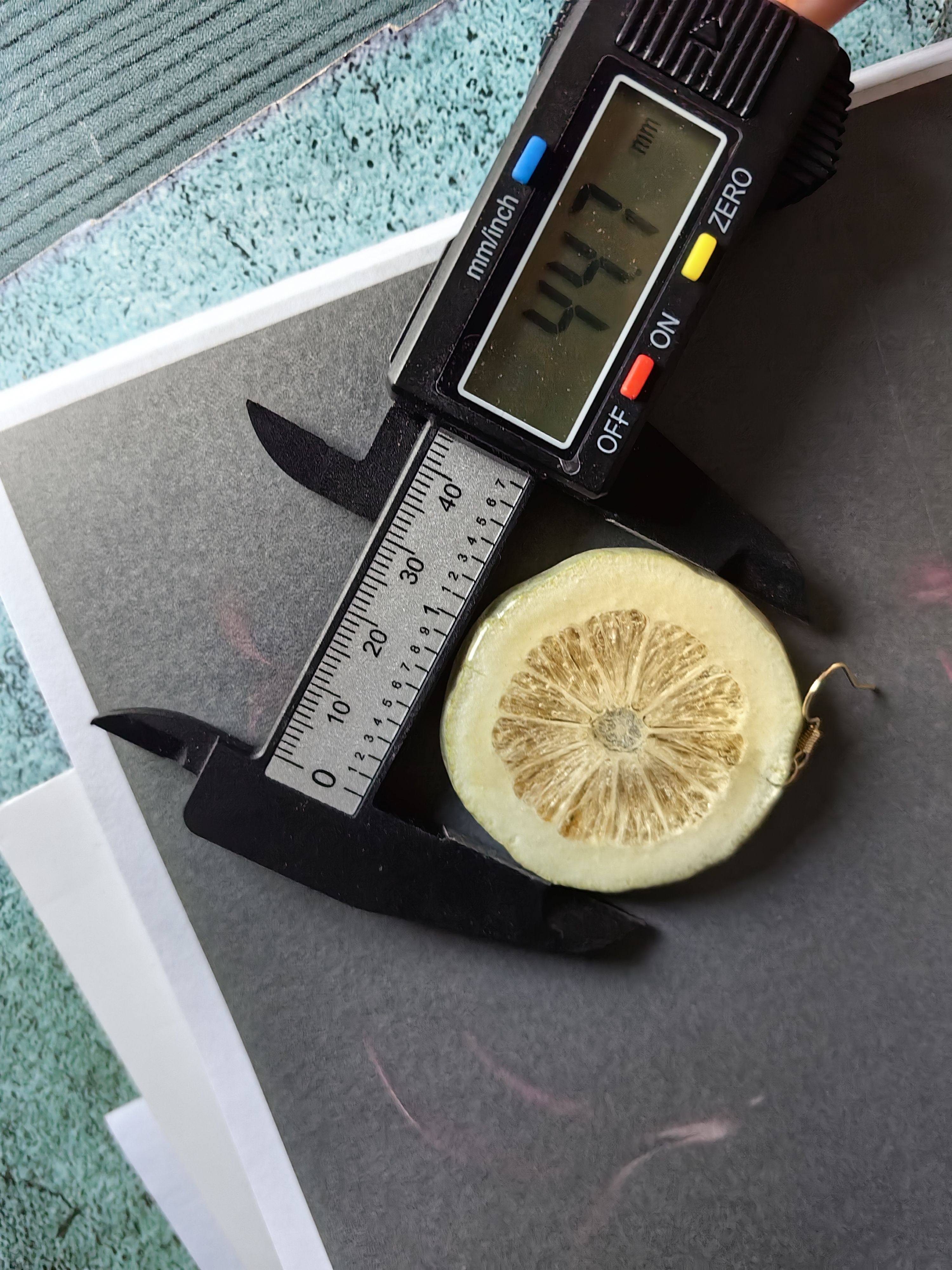 Colors: Dragon Fruit No. 1 (about 4 cm wide, about 3 mm thick), Gradient Blood Orange (about 3 cm wide, about 5 mm thick), Large Orange (about 6.5 cm in diameter, about 6.5 mm thick), Sliced Orange—paired 14k copper-plated gold ear hooks (about 4 mm thick), Irregular Small Orange (about 5 cm wide, about 6.5 mm thick), Small Lemon (about 5 cm wide, about 9 mm thick), Blood Orange, Red-Fleshed Dragon Fruit, Key Lime, Grapefruit