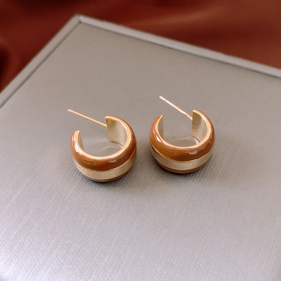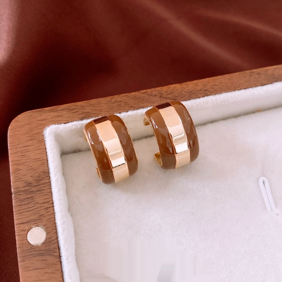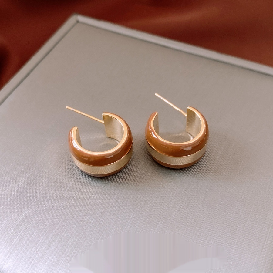 Real Gold Plated Silver Needle Striped Stud Earrings
