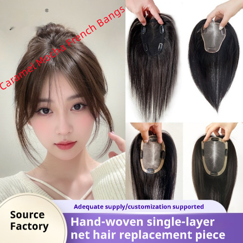 Color: natural color center-parted bangs pieces, caramel mocha center-parted bangs pieces, natural color French bangs, caramel mocha French bangs, natural color without bangs, caramel mocha without bangs