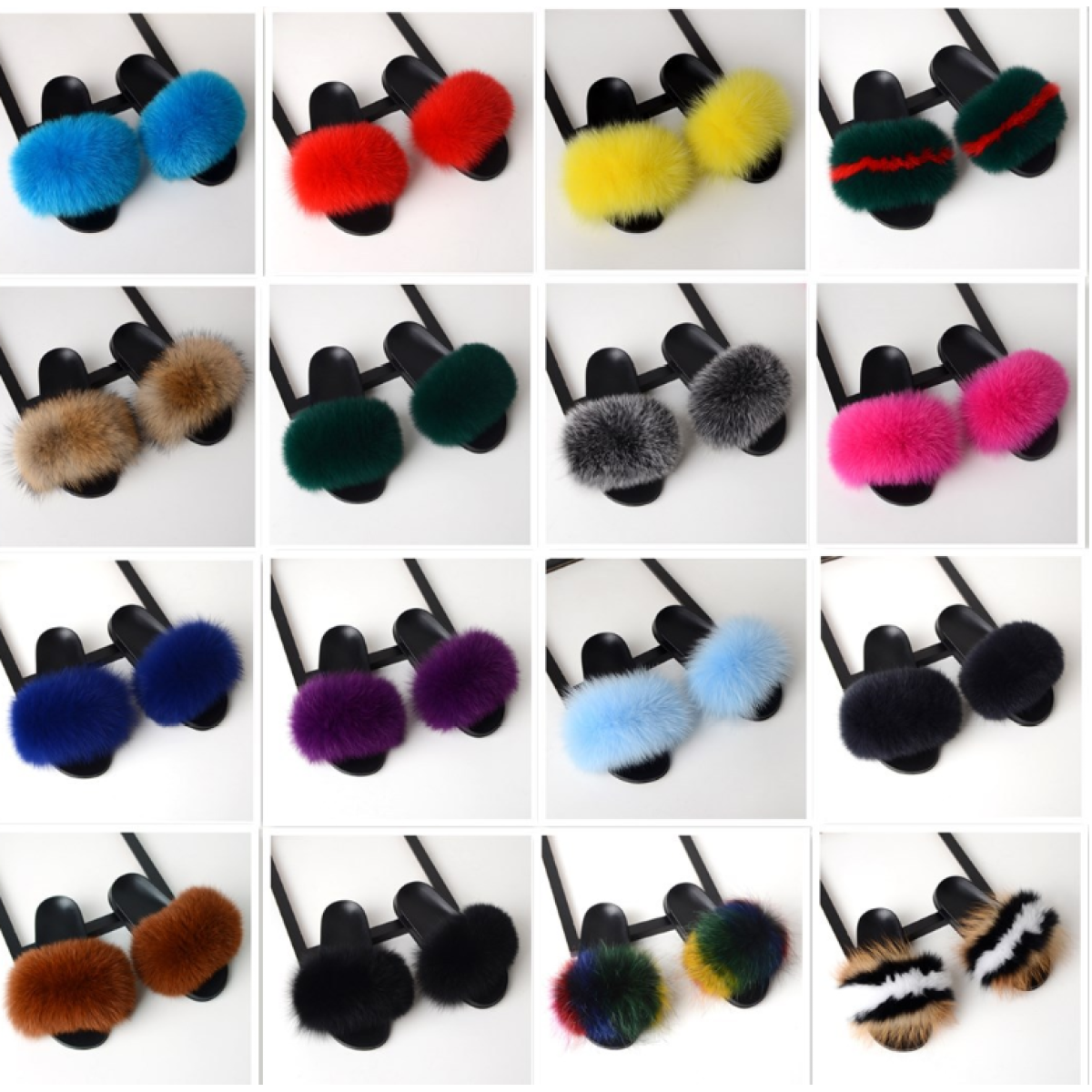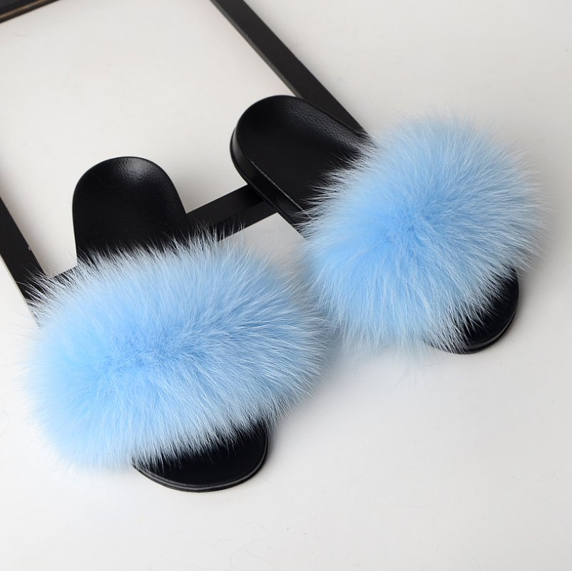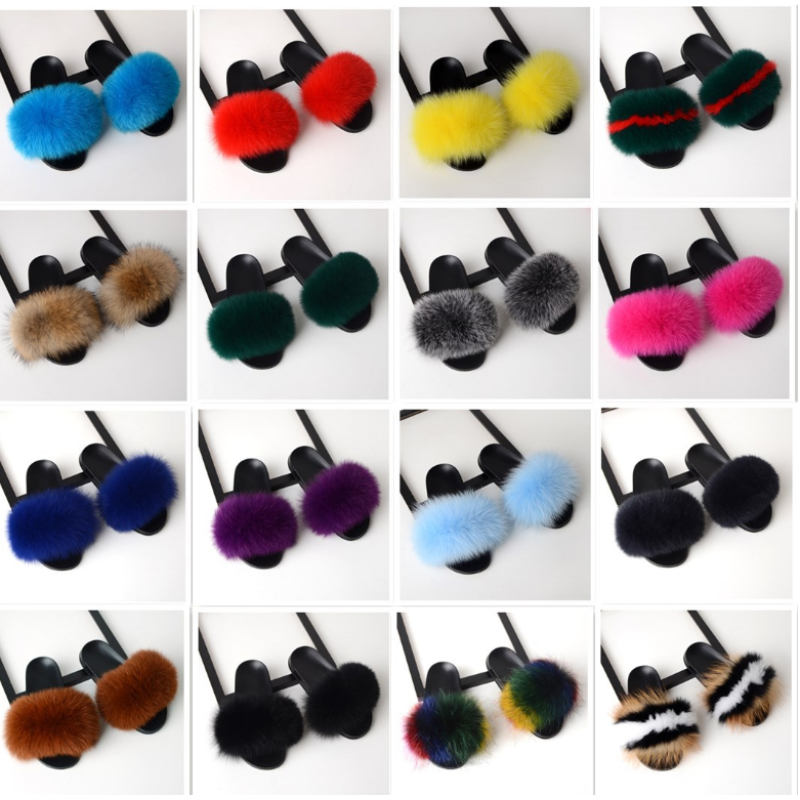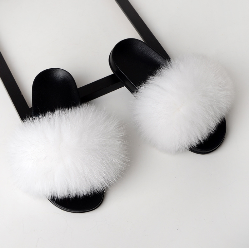 Real hair fox fur slippers female summer word drag fur plush shoes outside wearing sandals slip flat bottom
