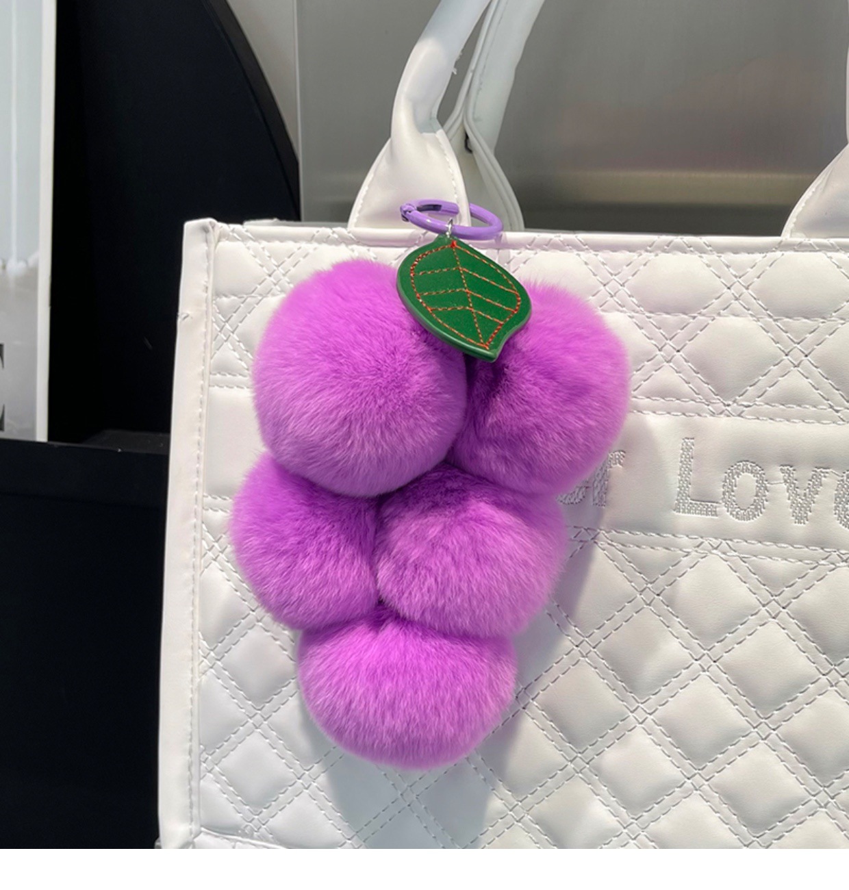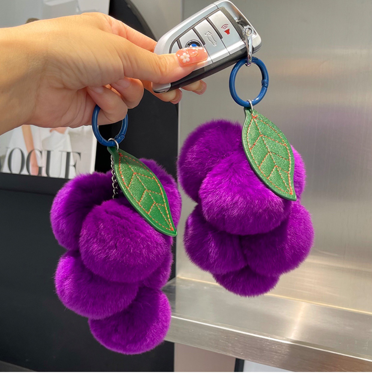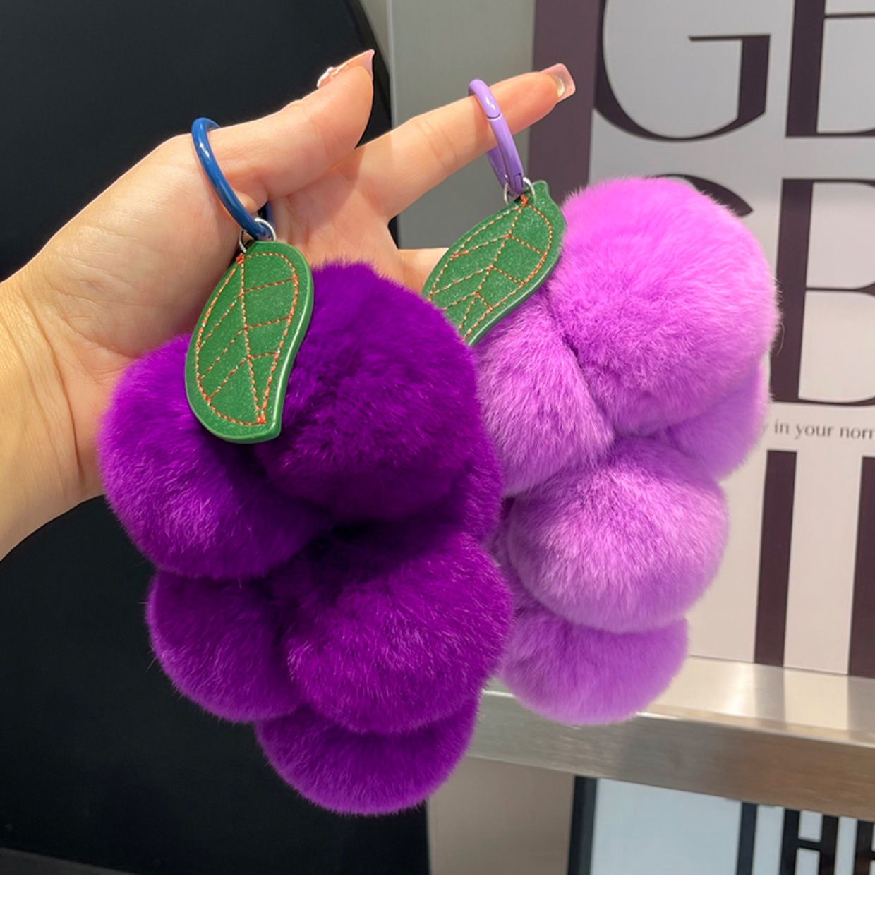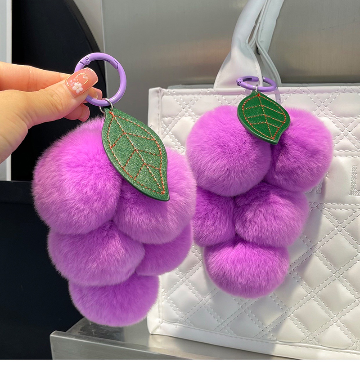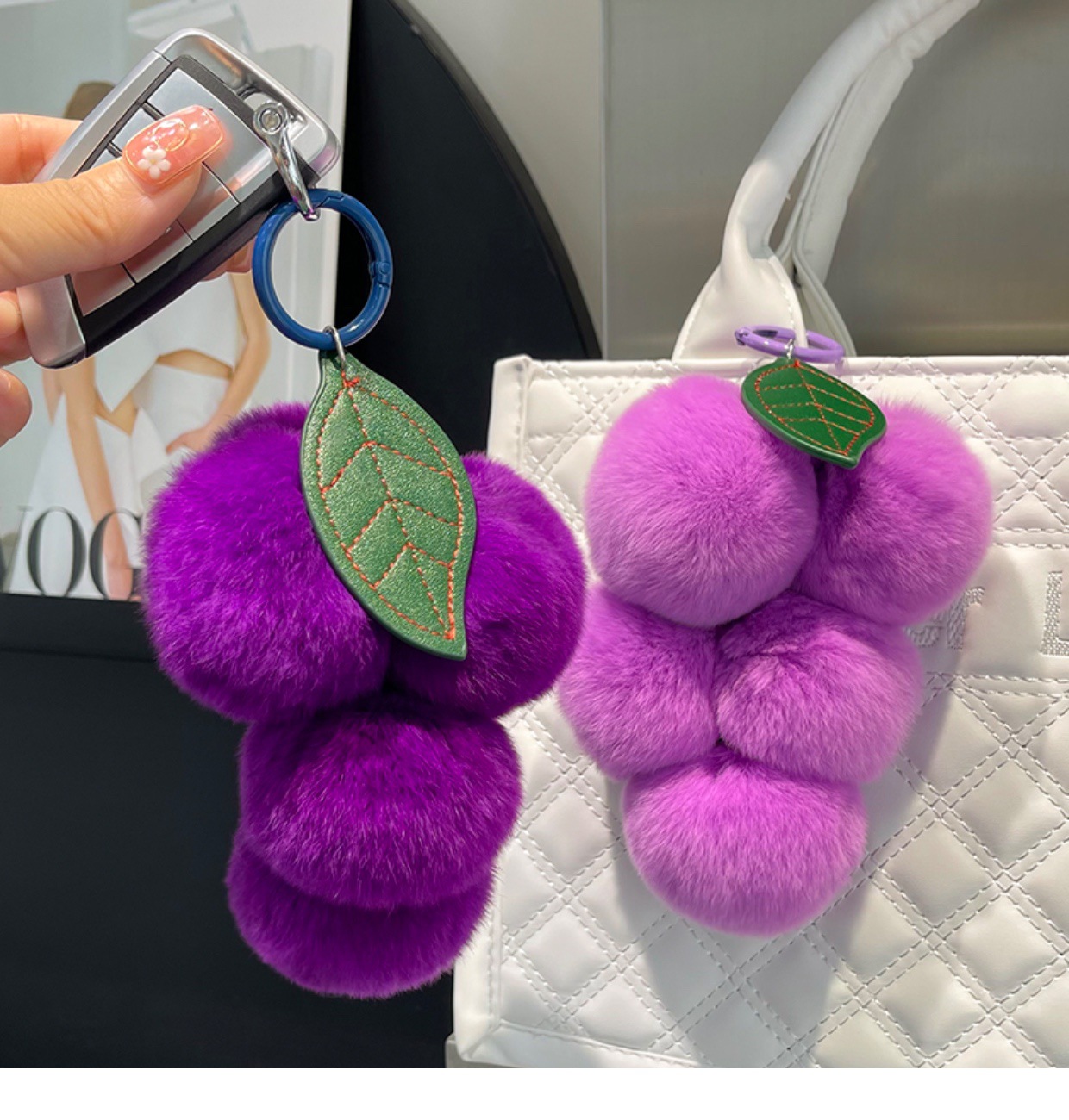 Real Rex Rabbit Hair Grape Car Key Ring Pendant