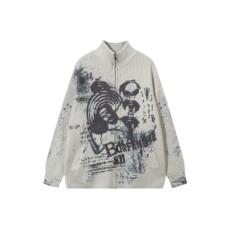 Real Shot American Street Fashion Personalized Knitted Cardigan Sweater