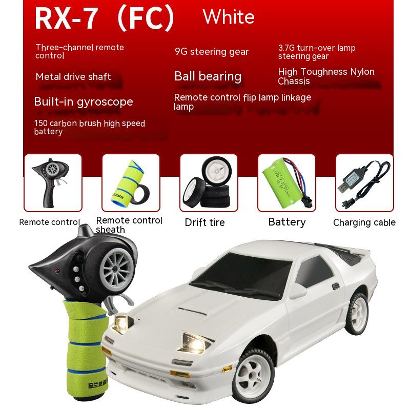 Boutique small drift, adopting a multi link design. The design is 1:18 to restore the original vehicle, and the appearance is completed according to the actual proportion. Built in gyroscope assist system, 2.4G 3-channel remote control (with beep), metal transmission shaft, customized 150 high-speed customization, drifting tires, headlights can be remotely controlled with C key to flip lights, linkage lights (turn signals, reverse lights, brake lights), four-wheel independent suspension, full vehicle ball bearings, 9g steering gear, sustainable power consumption of 20-30 minutes, fully proportional linear control of throttle and steering, tire motor with lock rotor protection, The battery circuit board has over charging, over discharging, low voltage protection, automatic frequency synchronization, and remote control distance of 30-50 meters