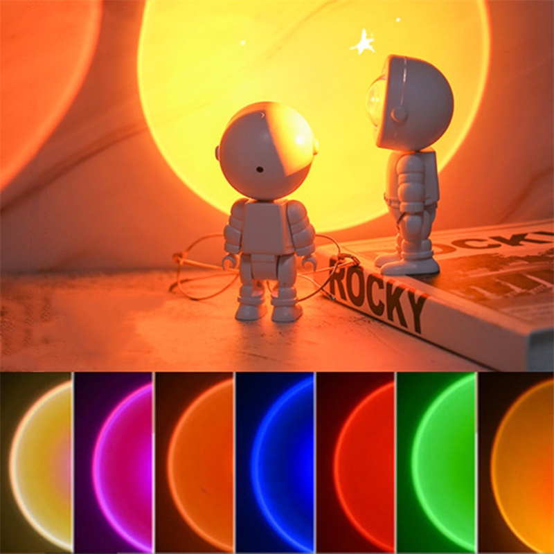 Romantic Astronaut Atmosphere Lamp. The colors of the astronaut sunset lamp are stunning and romantic. It's like taking a holiday by the sea in Los Angeles, watching the beautiful sunset with your sweethearts.