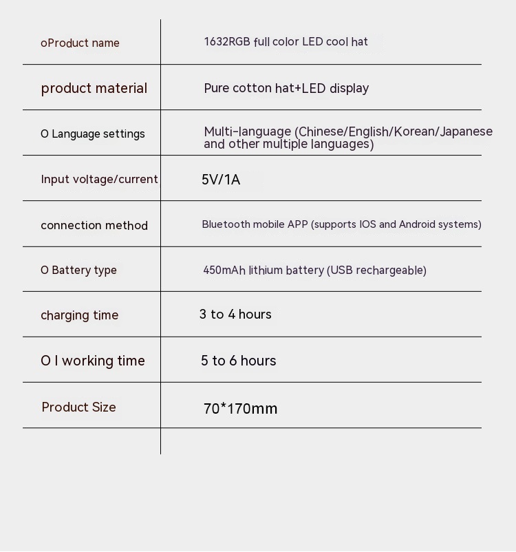 Material: 100% cotton hat LED display