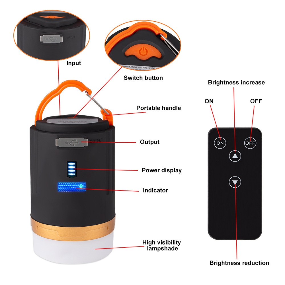 1 x camping lamp 1 remote control 1 x USB charging cable