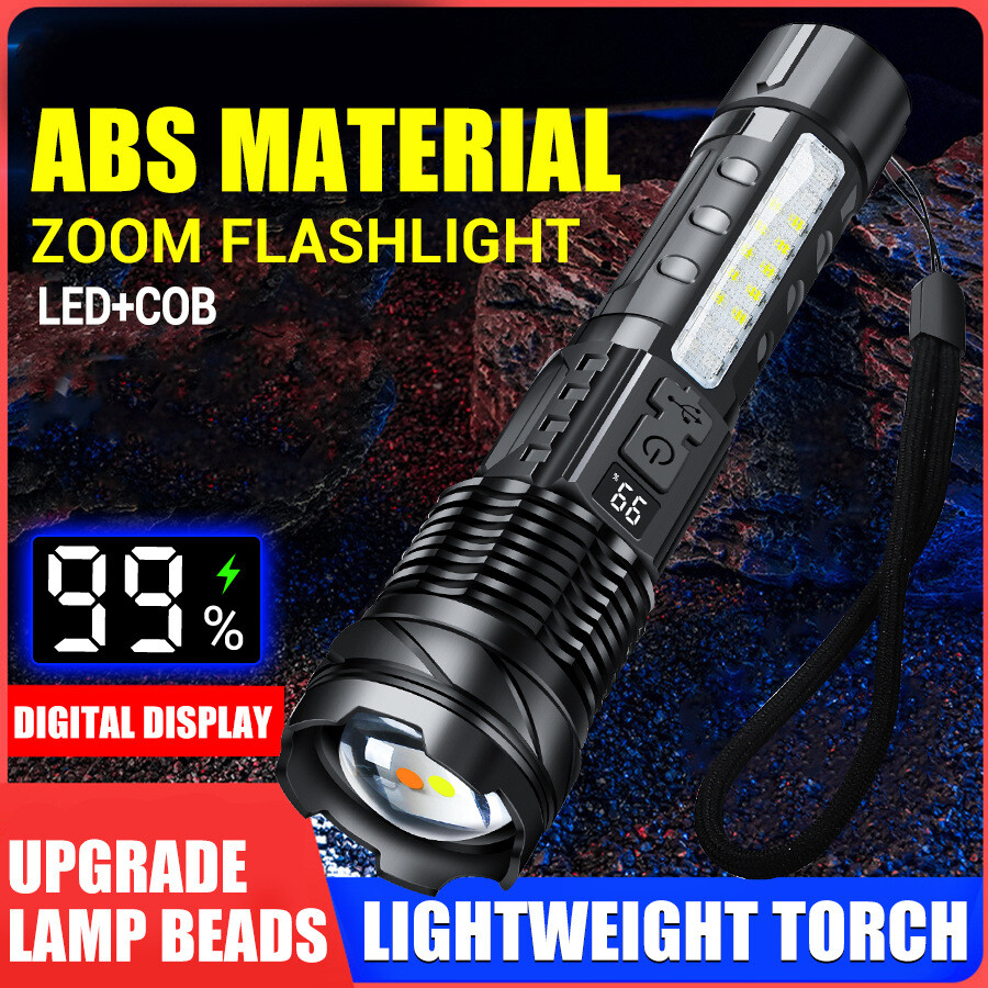 【USB Input and Power display 】 Rechargeable flashlight has an Type-C input port and power display. Support USB charging. You can charge with a laptop, car charger, charging treasure, etc.