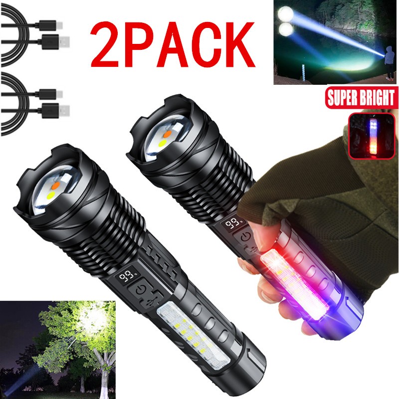 【USB Input and Power display 】 Rechargeable flashlight has an Type-C input port and power display. Support USB charging. You can charge with a laptop, car charger, charging treasure, etc.