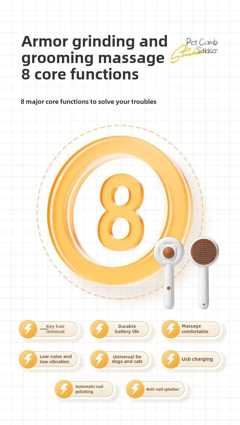 • Two-in-One Functionality :This pet grinding comb combines the functionality of nail cutters and a beauty cleaning comb, providing a two-in-one solution for your pet's grooming needs.