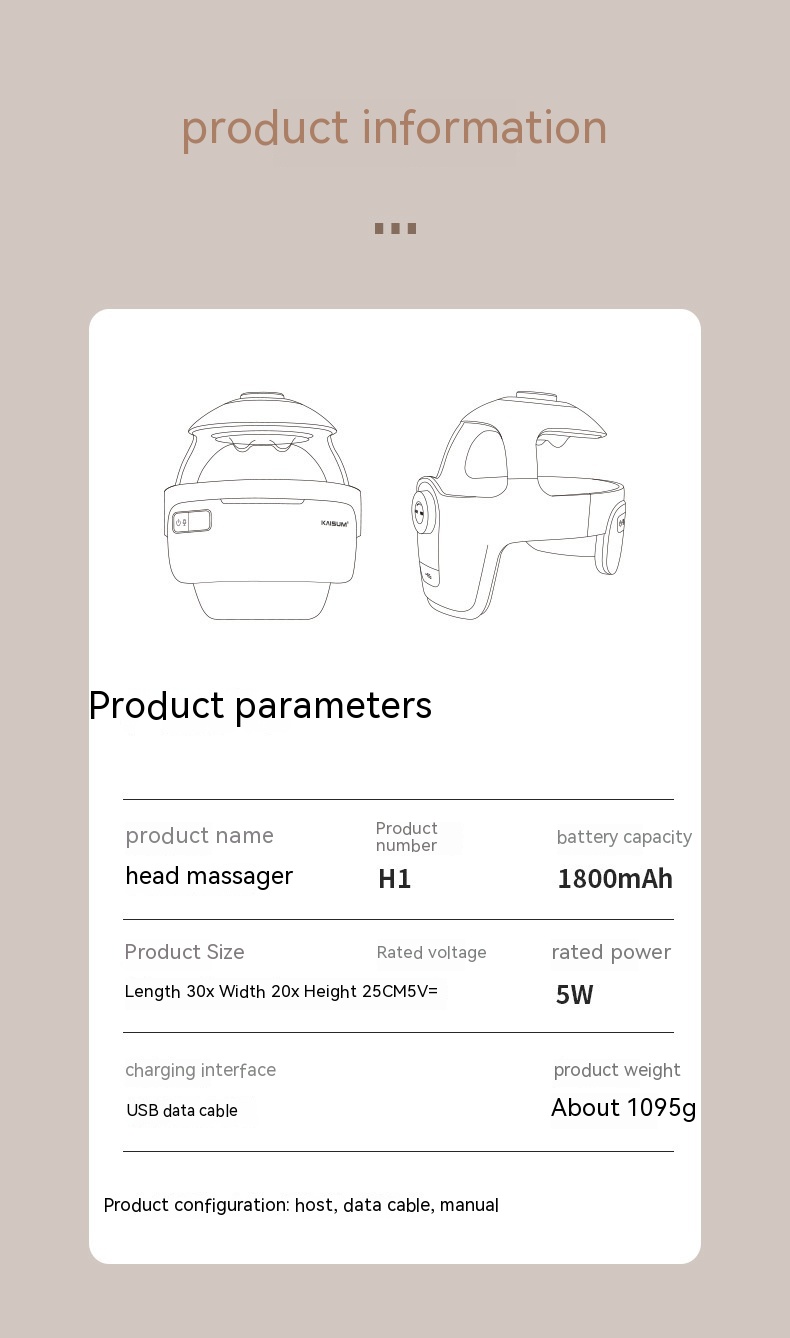 Specification: head and eye integrated wireless charging pressure 5 kinds of massage vibration massage constant temperature hot compress Bluetooth music pattern