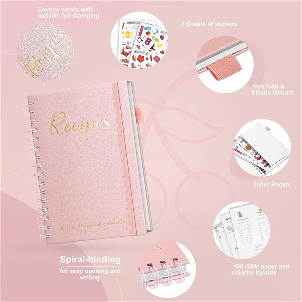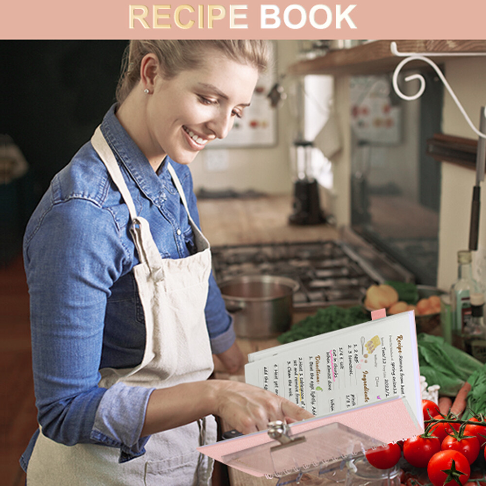 Lively Design and Practical Design: Our recipe organizer is made of Premium vegan leather hardcover and 100gsm acid-free paper won't bleed through, comes with an elastic band, pen holder, 1 pocket at the back for loose items, recipe cards. A5 size is great for keeping in kitchen shelf for easy access, numbered pages and a table of contents so you can find the recipe you need quickly.