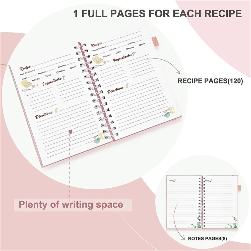 Recipe Book to Write in Your Own Recipes, Sprial Hardcover Personal Blank Recipe Notebook Hold 120 recipes with 2 PCS Stickers