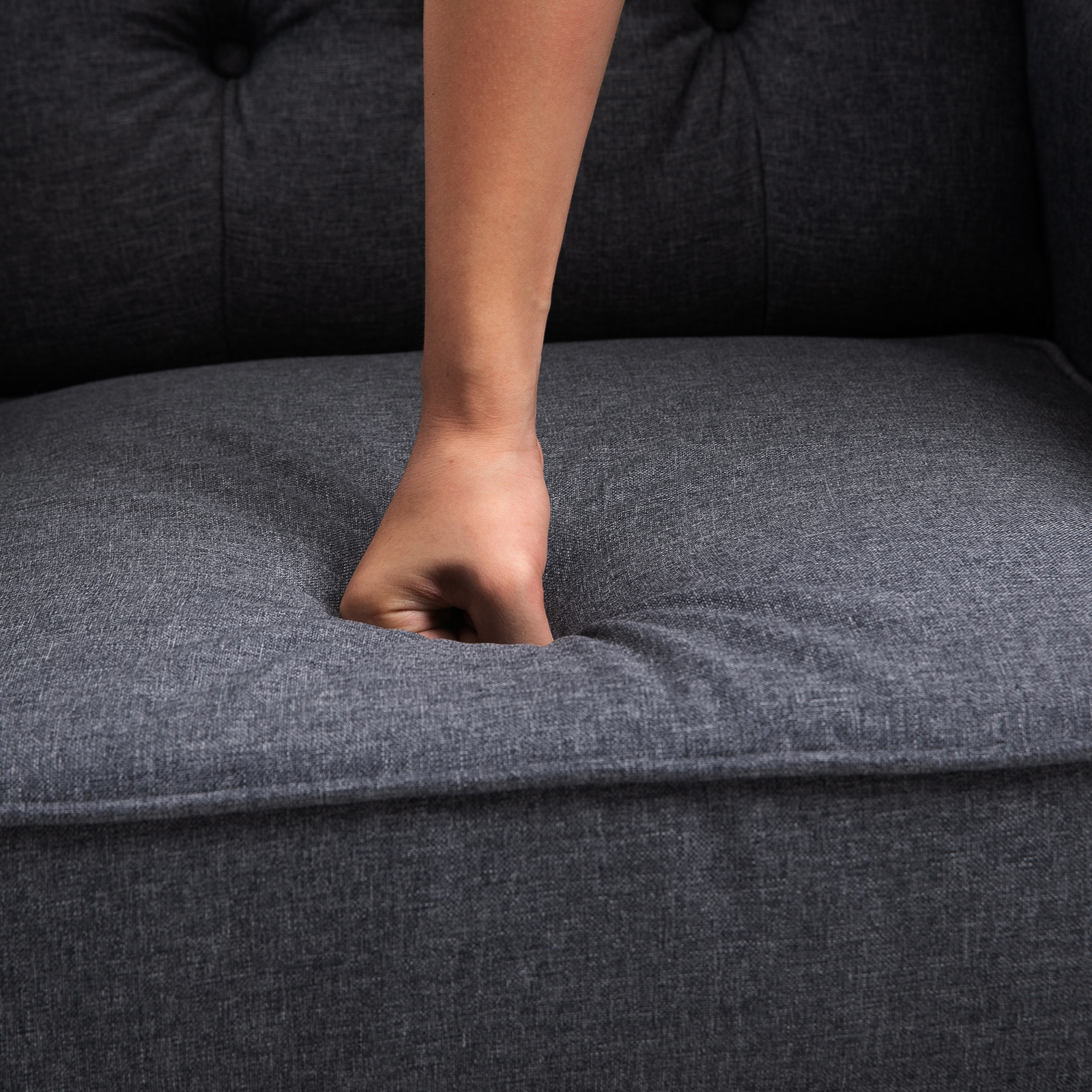 Take your relaxation to the next level with this recliner armchair. A strong, supportive wooden frame, it's fitted with thick sponge for comfort. The back reclines to 150° - lie back and relax to a position you want. Tufted on the back for a vintage and traditional look, bringing character into your space. Its finished with linen-look upholstery for easy maintenance and four solid wood legs to keep it stable on the floor.