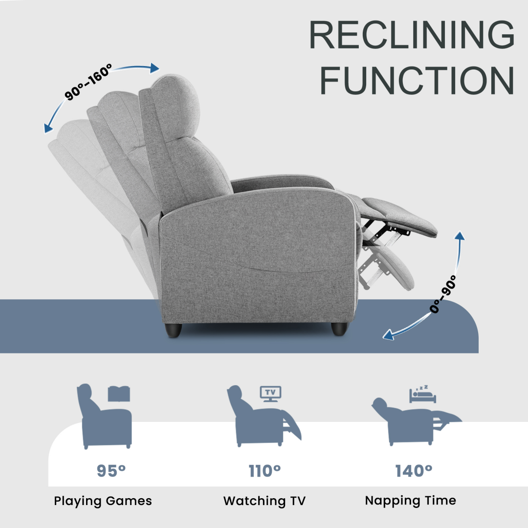 【Premium Quality for Maximum Comfort】Crafted with high-quality fabrics and filled with a high-resilience sponge, this recliner offers superior comfort and breathability. The sturdy hardwood frame ensures long-lasting durability and reliable stability, while the ergonomic design provides fatigue-free sitting even for extended periods.