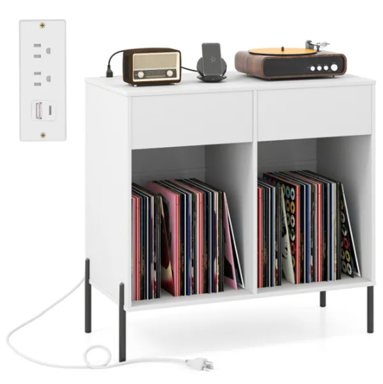 ● Versatile Vinyl Storage: The record player stand features a wide tabletop and 2 drawers for storing turntables and accessories. Besides, 2 open compartments with removable dividers allow for customized vinyl record storage, while ensuring easy access of your favorite albums.