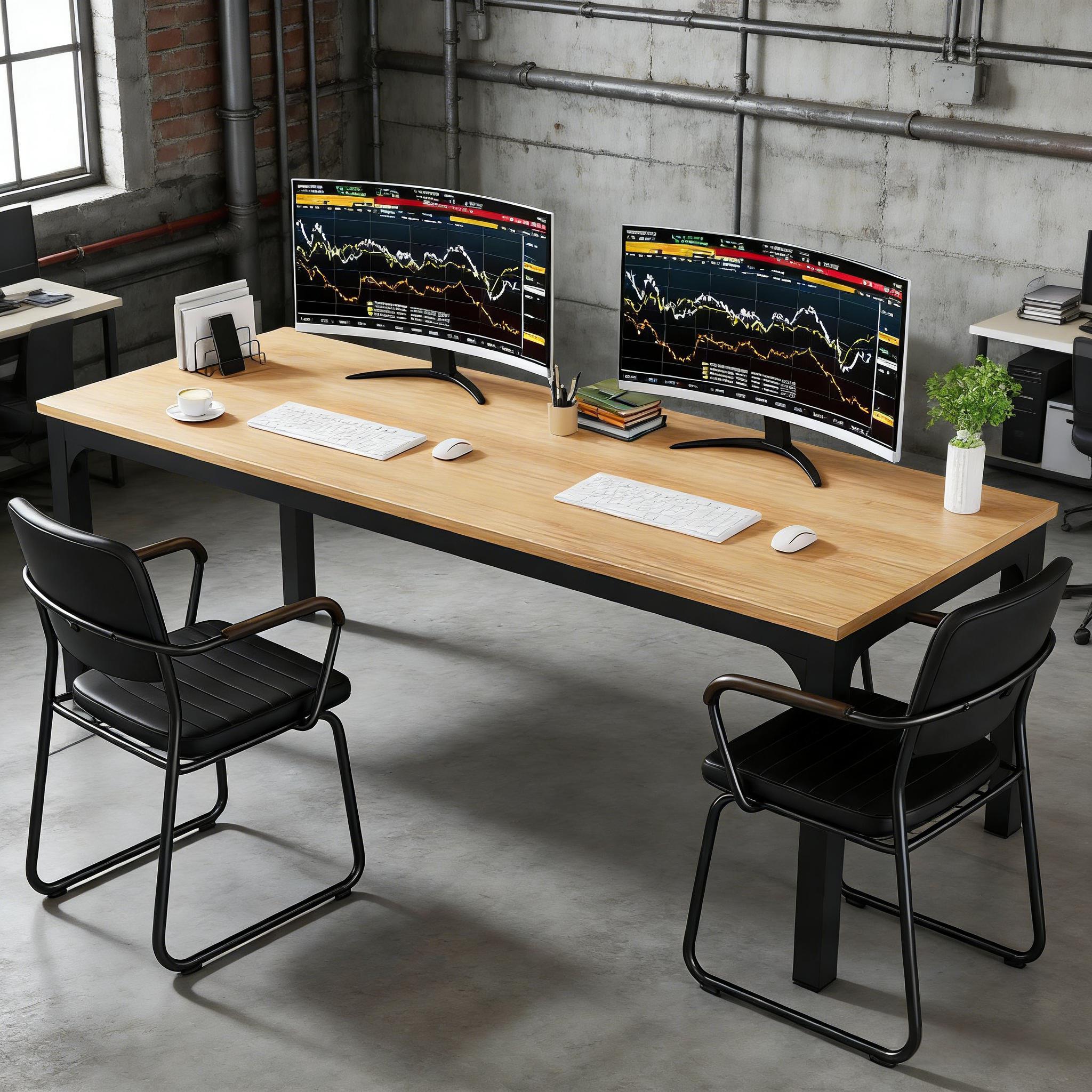 Important Reminder!!! 1) Attention: All products in our store do not support Canada self pickup ordering. Please do not create shipping labels for Canada. Our American products do not support self pickup to Canada 2)We do not ship to Alaska, Hawaii, US protectorates (e.g., Puerto Rico), P.O. boxes, or APO/FPO addresse 3)We don’t accept non-defective remorse returns Robust Construction - The office desk's panel is made of a 0.59" thick MDF Board, and the legs are built with heavy-duty powder-coated iron pipes measuring 1.96" by 1.96" in width. This construction offers industrial-style stability and durability, with a weight capacity of up to 200lbs. Expansive Workspace - The Extra Long Office Desk measures 78.74"W x 27.55"D x 29.52"H. This large desktop provides ample space for your laptop, phone, books, files, and more, keeping everything you need for efficient home office work within your reach. Dual Workspace Desk - This double workstation can easily accommodate two computers simultaneously. Two people can work side by side, independently, without disruptions, making it ideal for roommates or collaborative work. Simplistic Industrial Design - The office desk features a minimalist modern design with no additional decor, fulfilling your home office furniture needs. The adjustable foot pads aid in eliminating any wobbles and protect your floors from scrapes. Quick Assembly & Easy Maintenance - The desk comes with tools and instructions for quick and straightforward assembly. Its smooth surface allows for easy cleaning, letting you wipe off any dirty stains effortlessly.