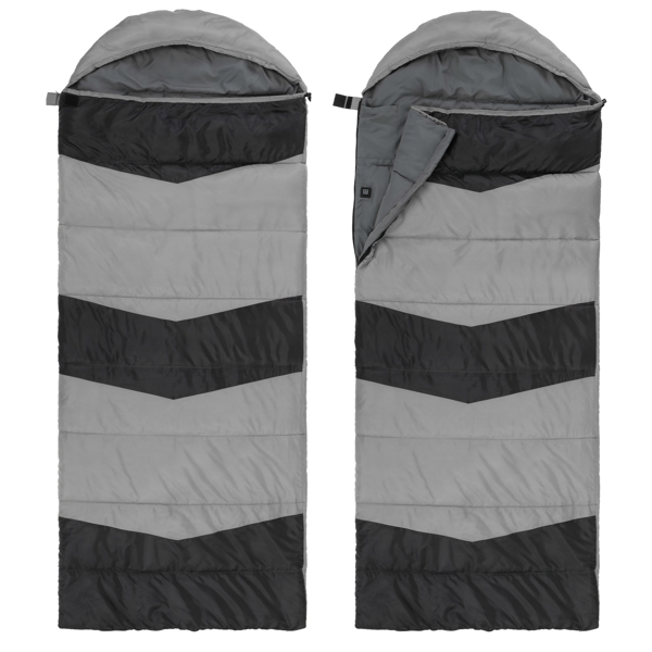 Rectangular Heated Sleeping Bag, Lightweight Sleeping Bag With Multi USB Powered Heating Pads, Waterproof Compact Envelope Sleeping Bag For Backpacking Hiking, Gray