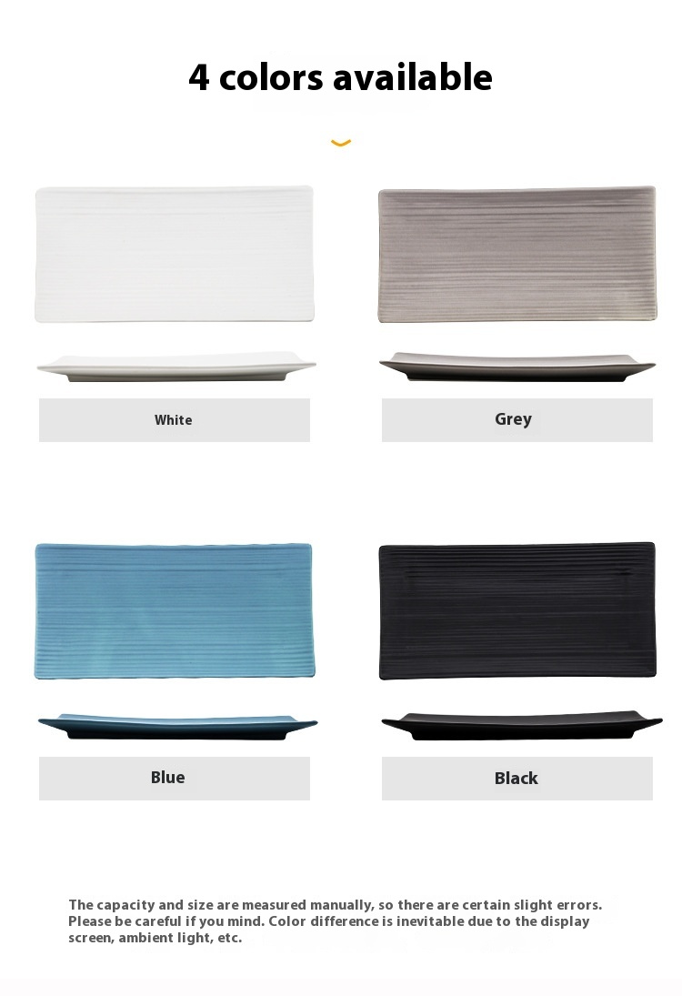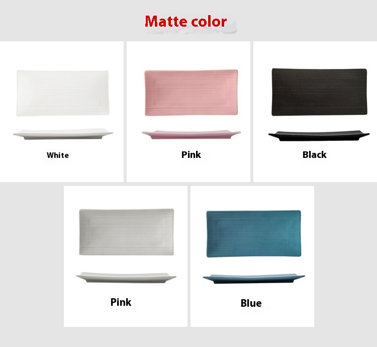 Color: 24cm-white rectangular plate, 24cm-black rectangular plate, 24cm-gray rectangular plate, 24cm-blue rectangular plate, 24cm-matting agent pink rectangular plate, 30cm-black rectangular plate, 30cm-gray rectangular plate, 30cm-blue rectangular plate, 30cm-white rectangular plate, 30cm-matting agent pink rectangular plate, 24cm-matte white rectangular plate, 24cm-frosted pink rectangular plate, 24cm-frosted black rectangular plate, 24cm-frosted gray rectangular plate, 24cm-frosted blue rectangular plate, 30cm-matte white rectangular plate, 30cm-frosted pink rectangular plate, 30cm-frosted black rectangular plate, 30cm-frosted gray rectangular plate, 30cm-frosted blue rectangular plate