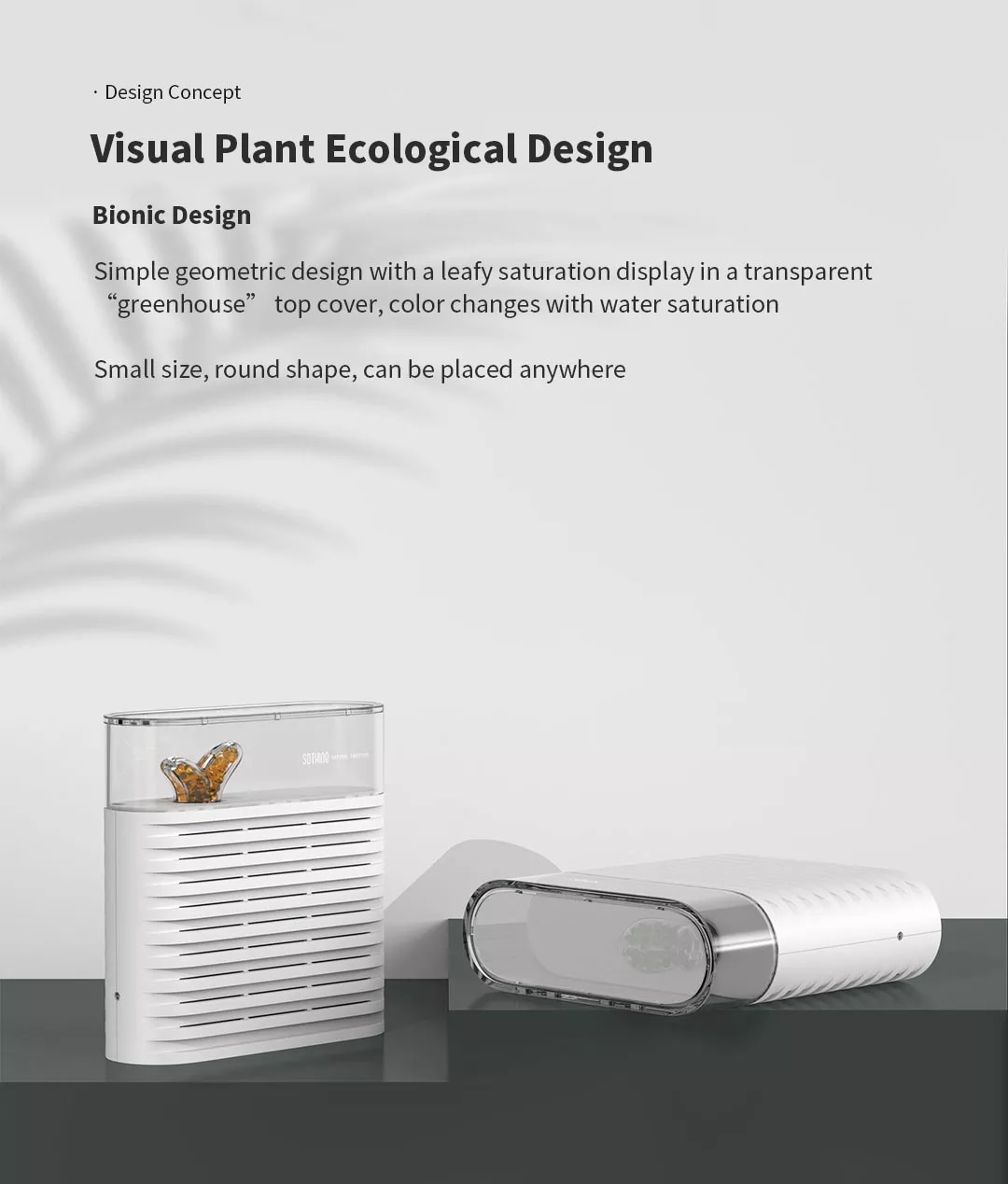 【Visual Plant Ecological Design】Simple geometric design with a leafy saturation display in a transparent “greenhouse” top cover, color changes with water saturation