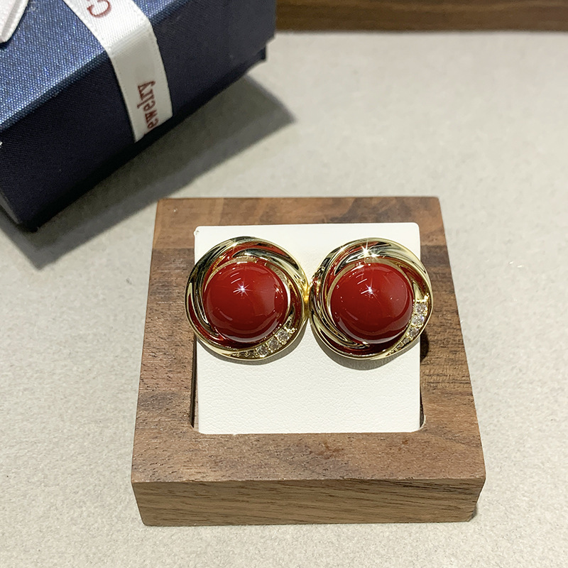 Red Pearl Wave Lace Earrings