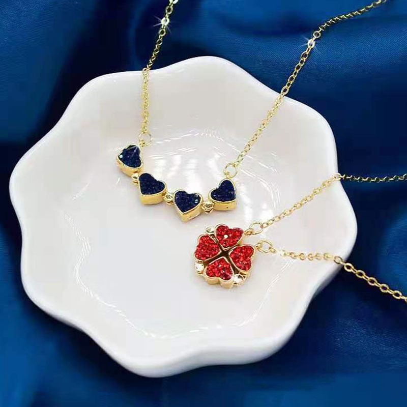 Red And Black Love Pendant Clover Necklace With Diamonds Does Not Fade
