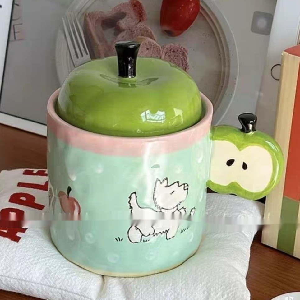 Green Apple Puppy Cup green apple Spoon gift box gift bag free coaster,