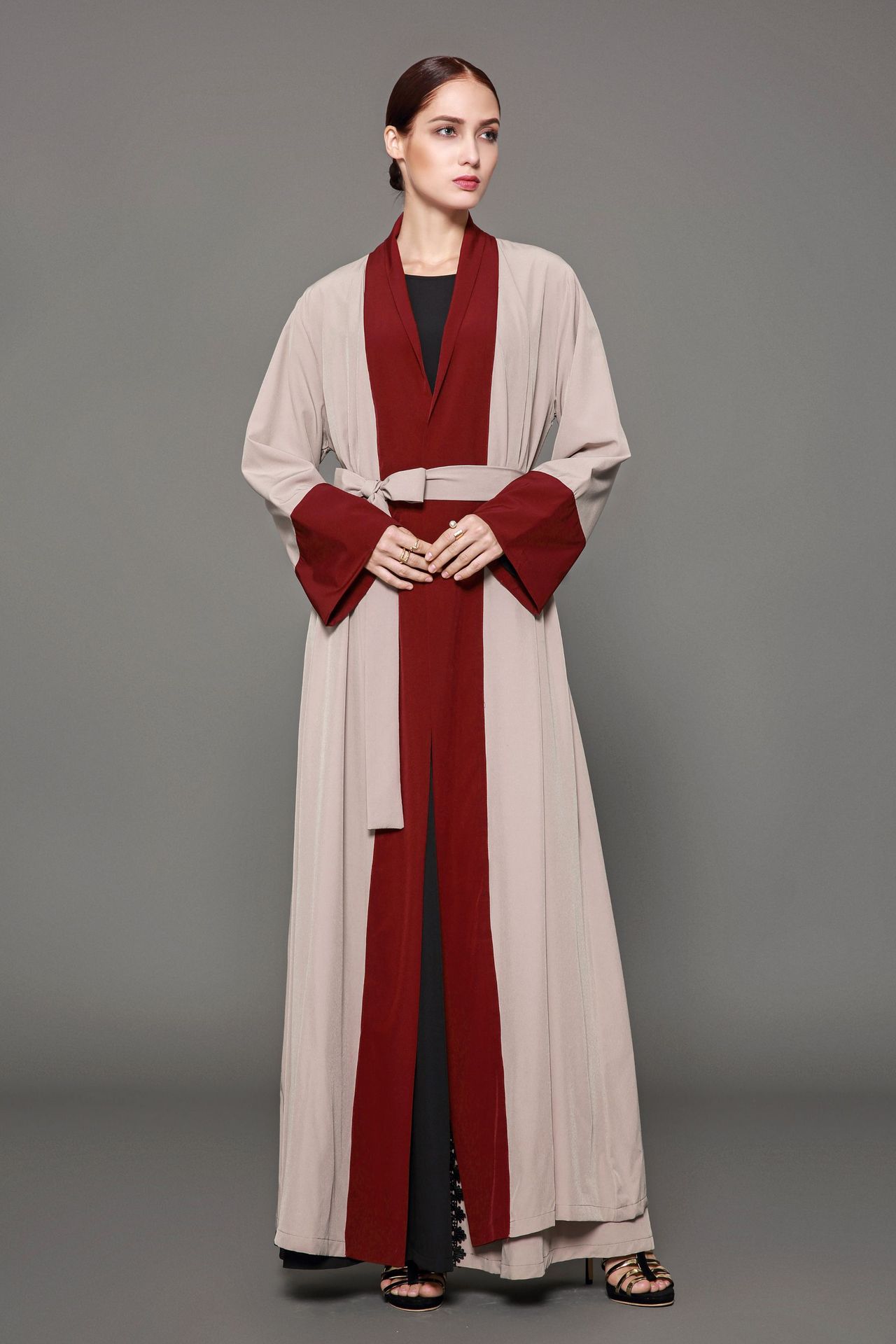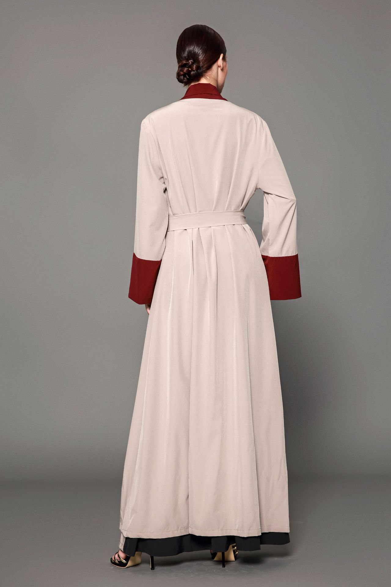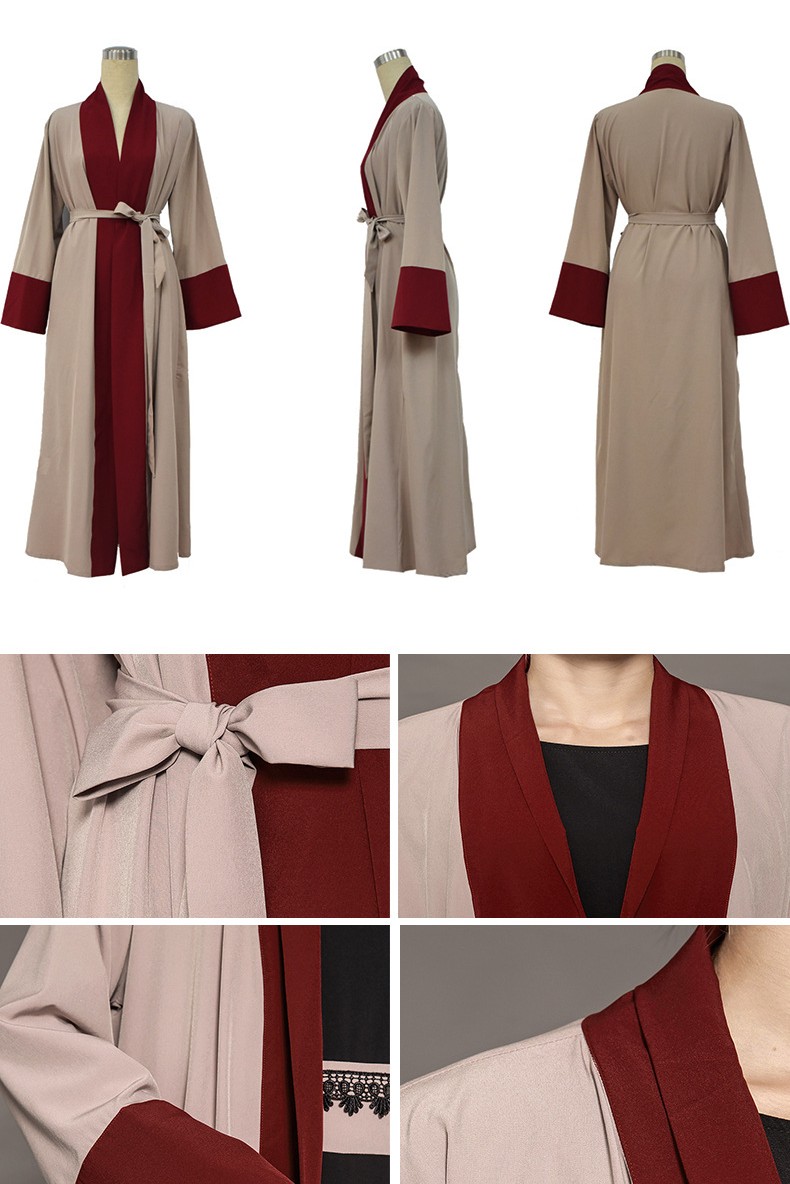 Red Brown Patchwork Flare Long Sleeved Dress